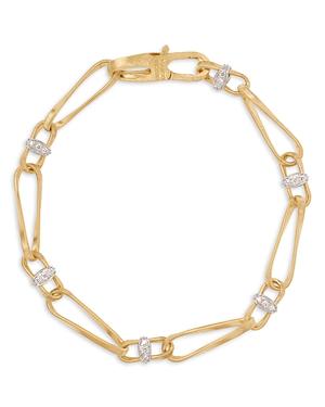 From the Marrakech Onde Collection. Marco Bicegos timeless chain bracelet is composed of hand-coiled 18K-yellow-gold links. Pav diamonds set in 18K white gold add a touch of radiance to this elegant accessory. Diamonds, 0.3 tcw Diamond color grade: F-H Diamond clarity grade: VS1-VVS1 18K yellow and white gold Lobster clasp Made in Italy SIZE About 7.5L ABOUT THE BRAND Marco Bicego first started learning the art of goldsmithing from his father, and ultimately formed his own brand in 2000 in Trissino, Italy. All crafted in 18K gold, the brand is most known for its handmade pieces in engraved and coil finishes, as well as vibrant semi-precious jewels. Marco has created his brand to be versatile, so one can mix and match collections for daily wear. Fine Jewelry - Marco Bicego A > Marco Bicego > Saks Fifth Avenue > Barneys. Marco Bicego. Color: Yellow Gold.
