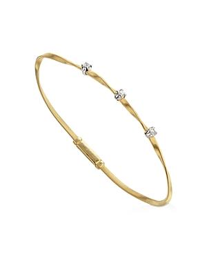 From the Marrakech Collection. A veritable classic, three sparkling diamonds adorn a slender strand bracelet showcasing Marco Bicegos signature hand-twisted corda di chittara technique, in the finest of Italian 18K yellow gold. Since 2000, Marco Bicego has incorporated traditions and virtues passed down by his father, handcrafting jewelry that embodies Italian craftsmanship and contemporary design. Diamonds, 0.15 tcw 18k yellow gold Push-lock closure Made in Italy SIZE Length, about 7 ABOUT THE BRAND Marco Bicego first started learning the art of goldsmithing from his father, and ultimately formed his own brand in 2000 in Trissino, Italy. All crafted in 18K gold, the brand is most known for its handmade pieces in engraved and coil finishes, as well as vibrant semi-precious jewels. Marco has created his brand to be versatile, so one can mix and match collections for daily wear. Fine Jewelry - Marco Bicego A > Marco Bicego > Saks Fifth Avenue > Barneys. Marco Bicego. Color: Yellow Gold.