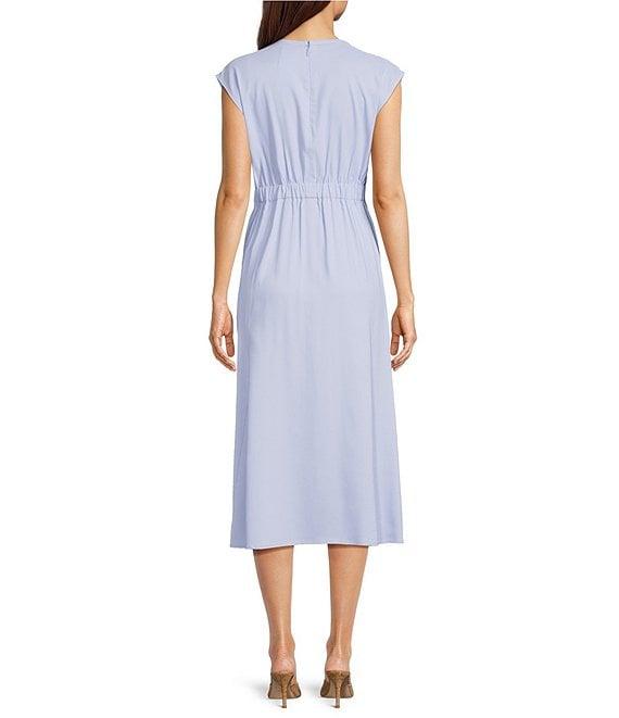From Marella, this dress features:Stretch twill woven fabricationFit and flare silhouetteRound neckline with front keyhole detailCap sleevesDarted elasticized waistlineTwo front hip pocketsGodet-paneled skirtMidi lengthConcealed back zip closureLyocell/viscose/elastaneDry cleanImported.