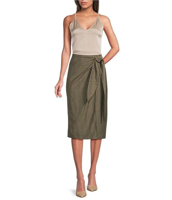 From Marella, this skirt features: Twill fabrication Wrap silhouette Side knot fastening Relatively slim fit Midi length Crepe de chine lining Concealed back zip closure Virgin wool/polyester/viscose; lining: acetate/polyester Dry clean Imported.