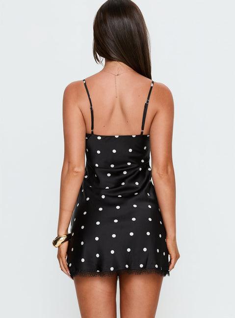 Margareta Lace Trim Mini Dress Black / White Polka Dot