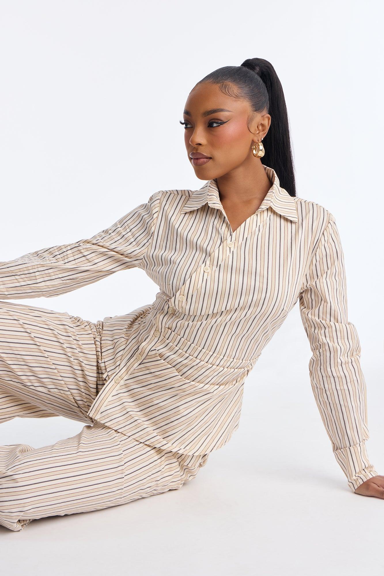 Margot Wrap Pinstripe Pant Set - Cream/combo Female