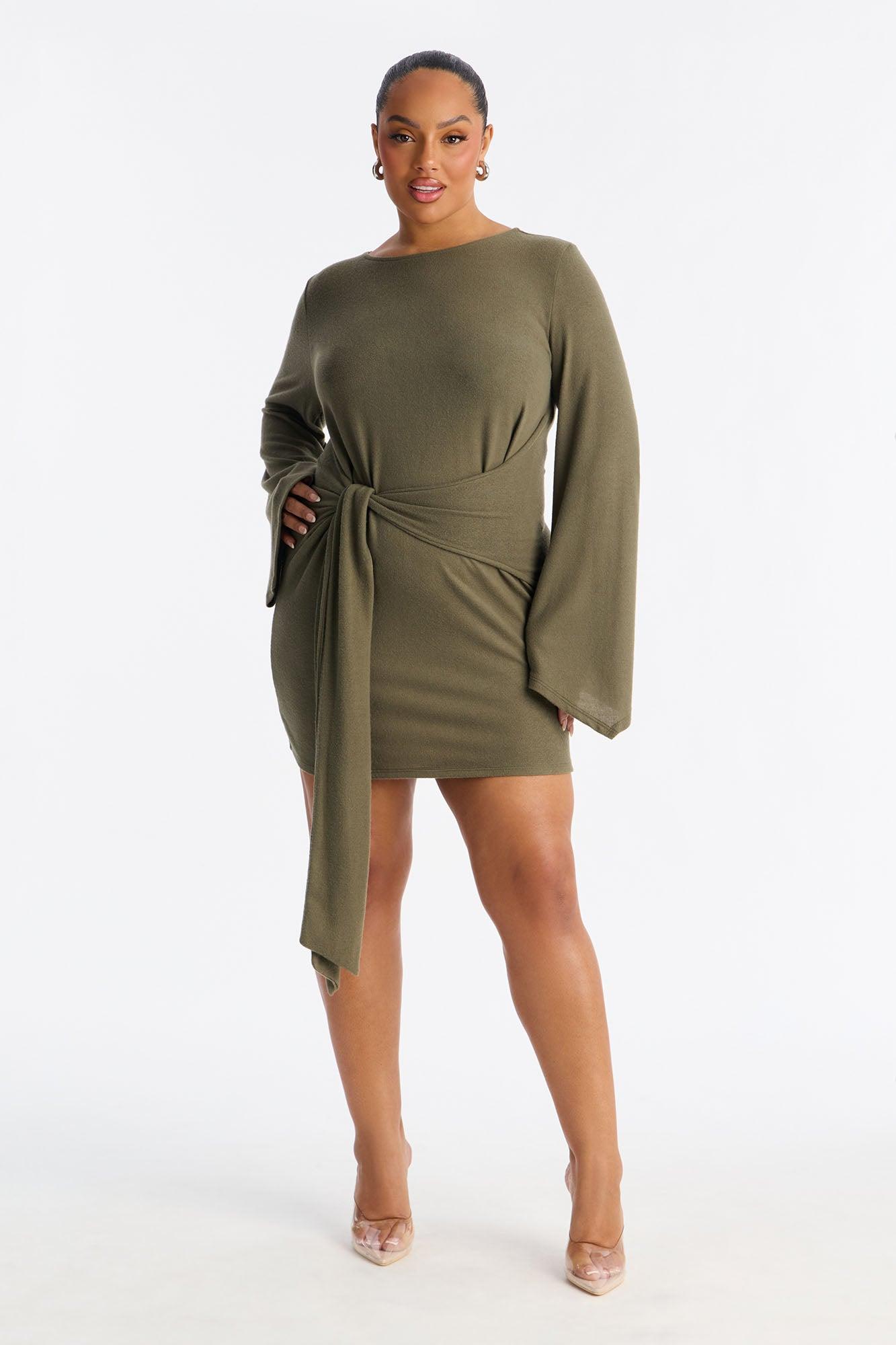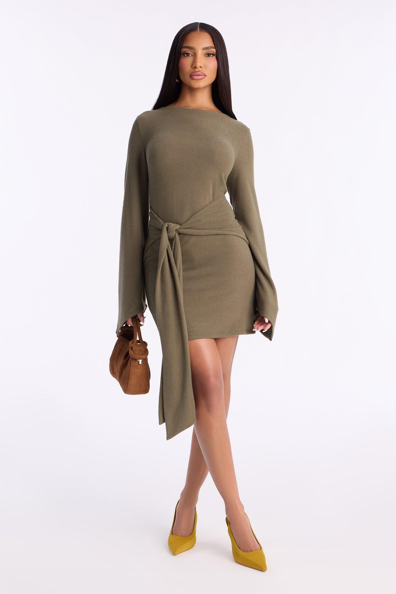 Mariana Long Sleeve Sweater Mini Dress - Olive Female