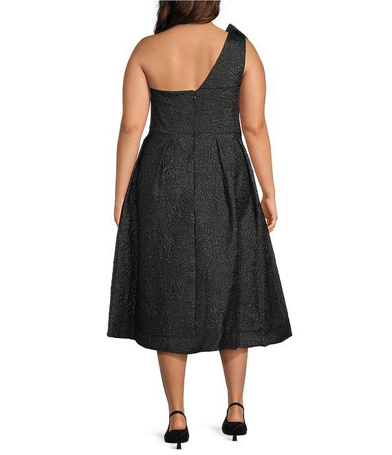 Marina Plus Size Jacquard Brocade Bow One Shoulder Sleeveless Midi Gown