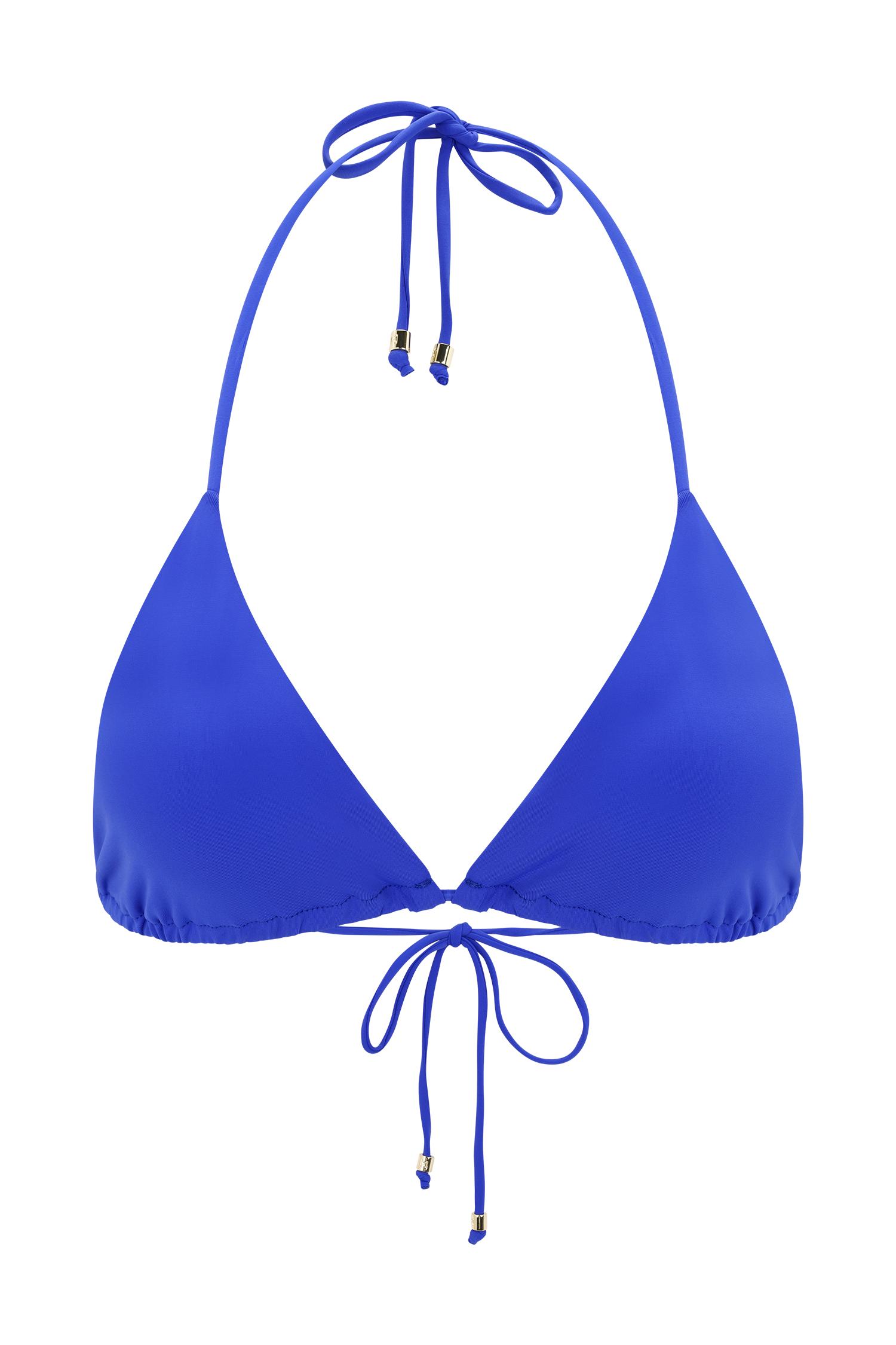 Soft ties, strong impact. The MARQUISE Bikini Top is your go-to for sun-drenched days and poolside lounging. Designed in a classic triangle silhouette, it features ruched cups with adjustable halter neck and back ties for a custom fit. Fully lined for comfort and support, this bikini top pairs bold print with timeless shape—perfect for styling for your own signature swim look.