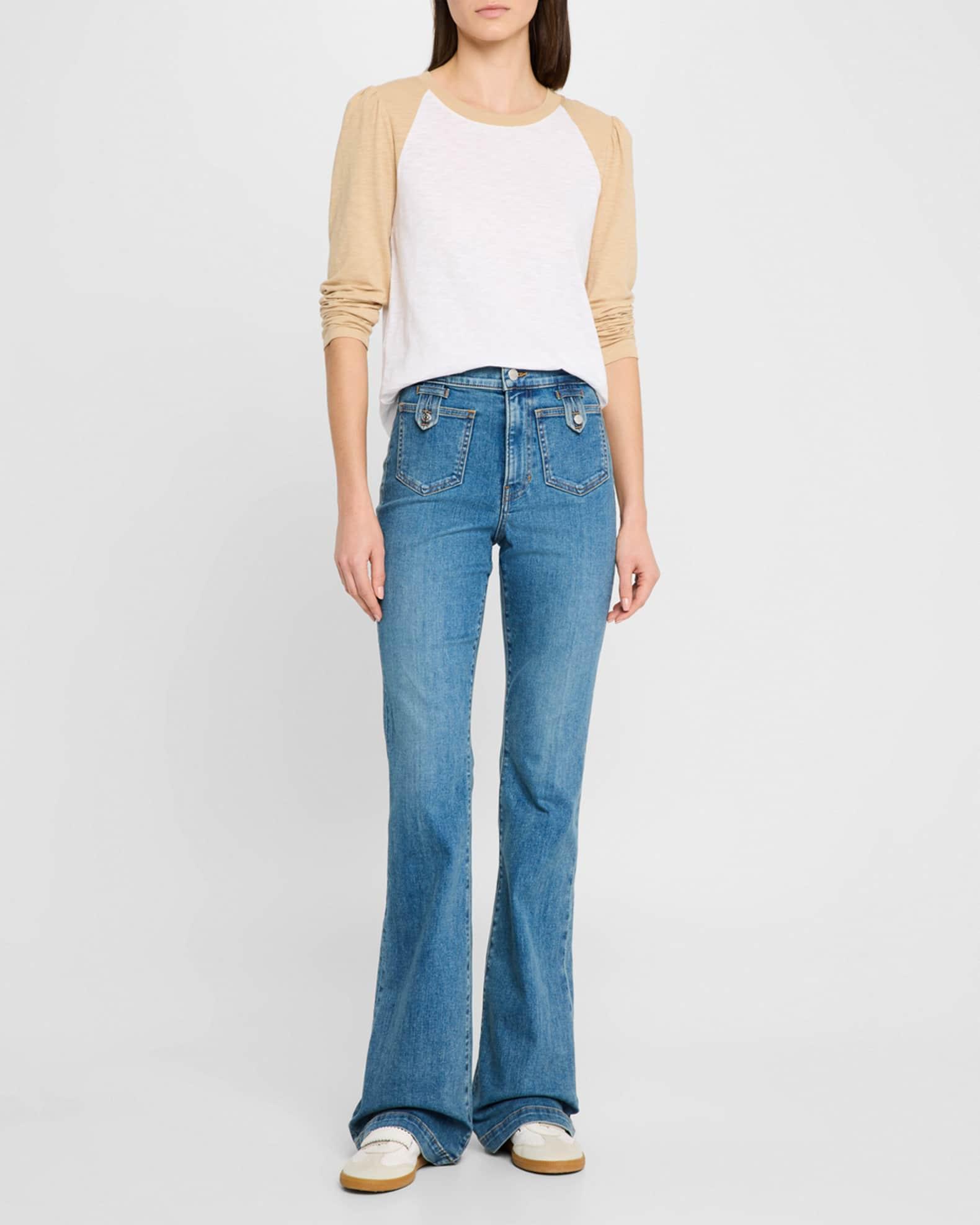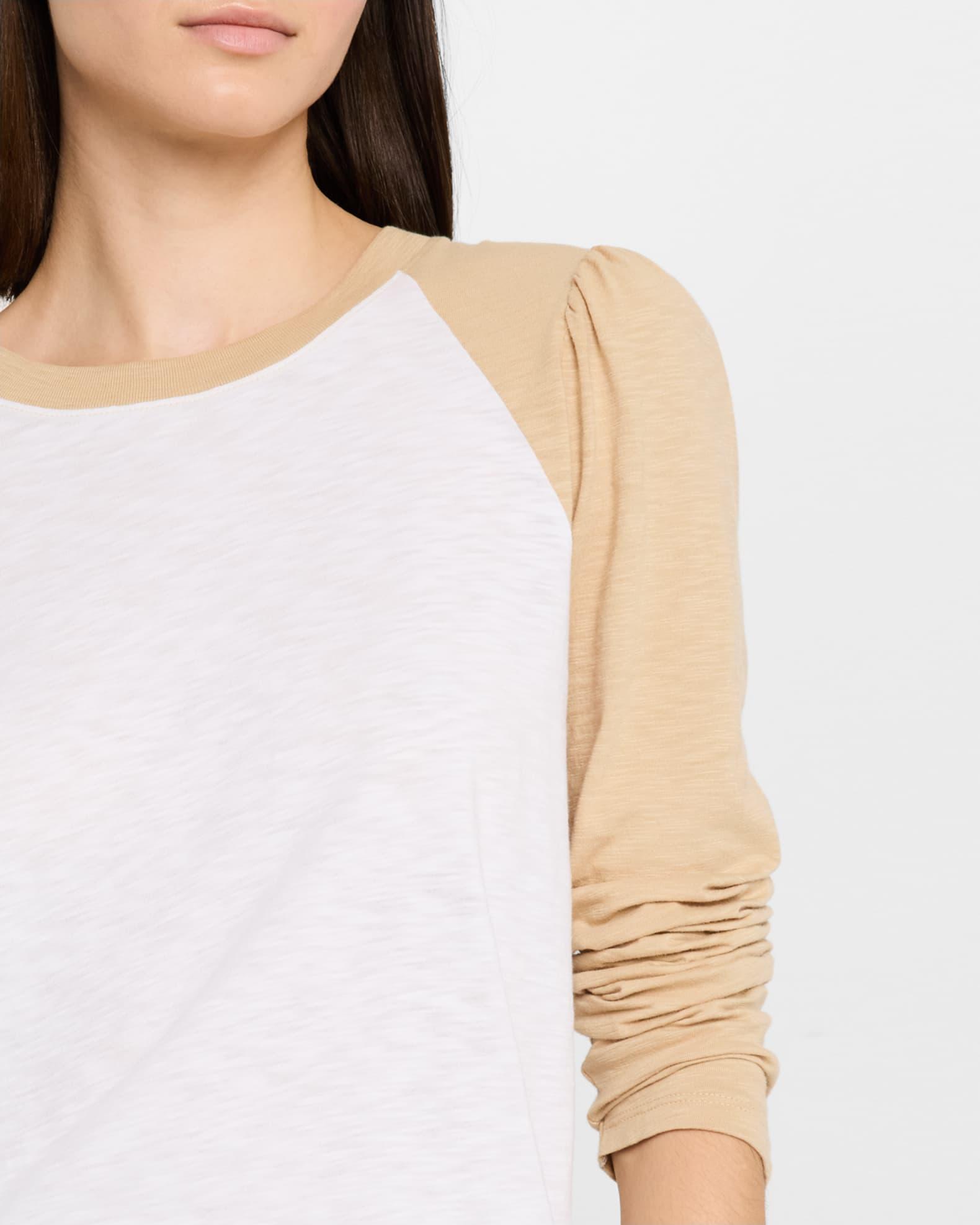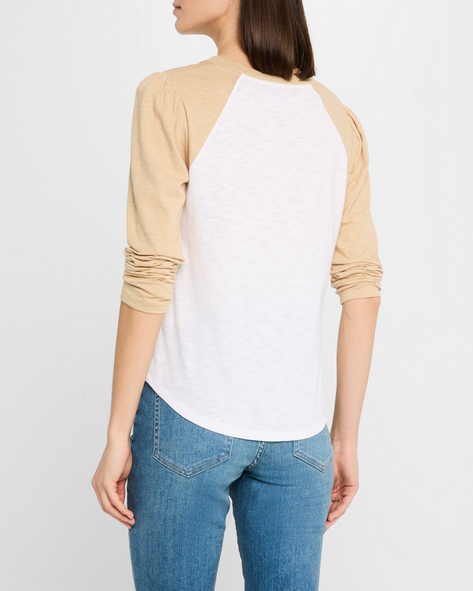 Veronica Beard "Mason" cotton baseball tee featuring puff sleeves Crew neckline Long sleeves; approx. 29.3"L Easy fit Rounded hem Pullover style Cotton/elastane Machine wash cold Imported