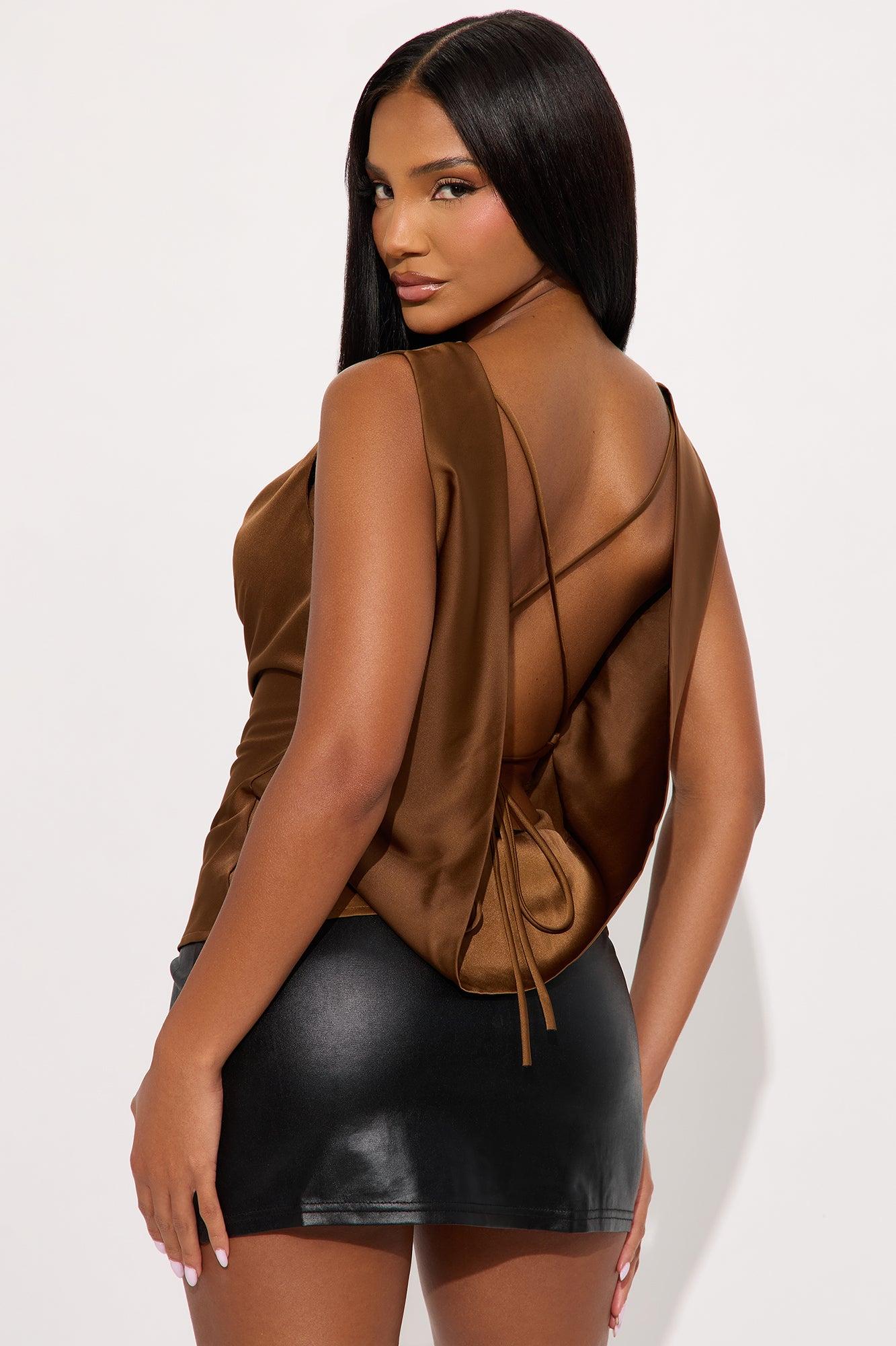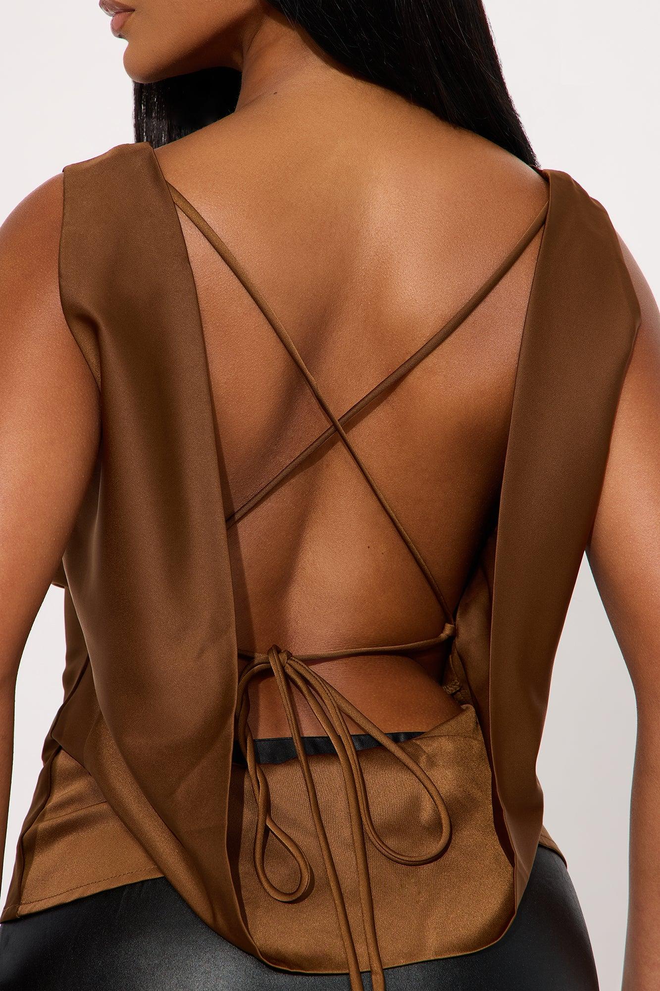 Match My Vibe Lace Up Satin Blouse - Brown Female