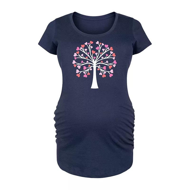 She will love showing off her style with this Maternity Heart Tree Of Life Graphic Tee. FEATURES Ruched sides Short sleeves ScoopneckFIT & SIZING Fitted 31 1/2-in. length from shoulder to hemFABRIC & CARE Solid Colors: Cotton ; Heather Colors: Cotton/Polyester Machine wash Imported Size: Small. Color: Navy. Gender: female. Age Group: adult.