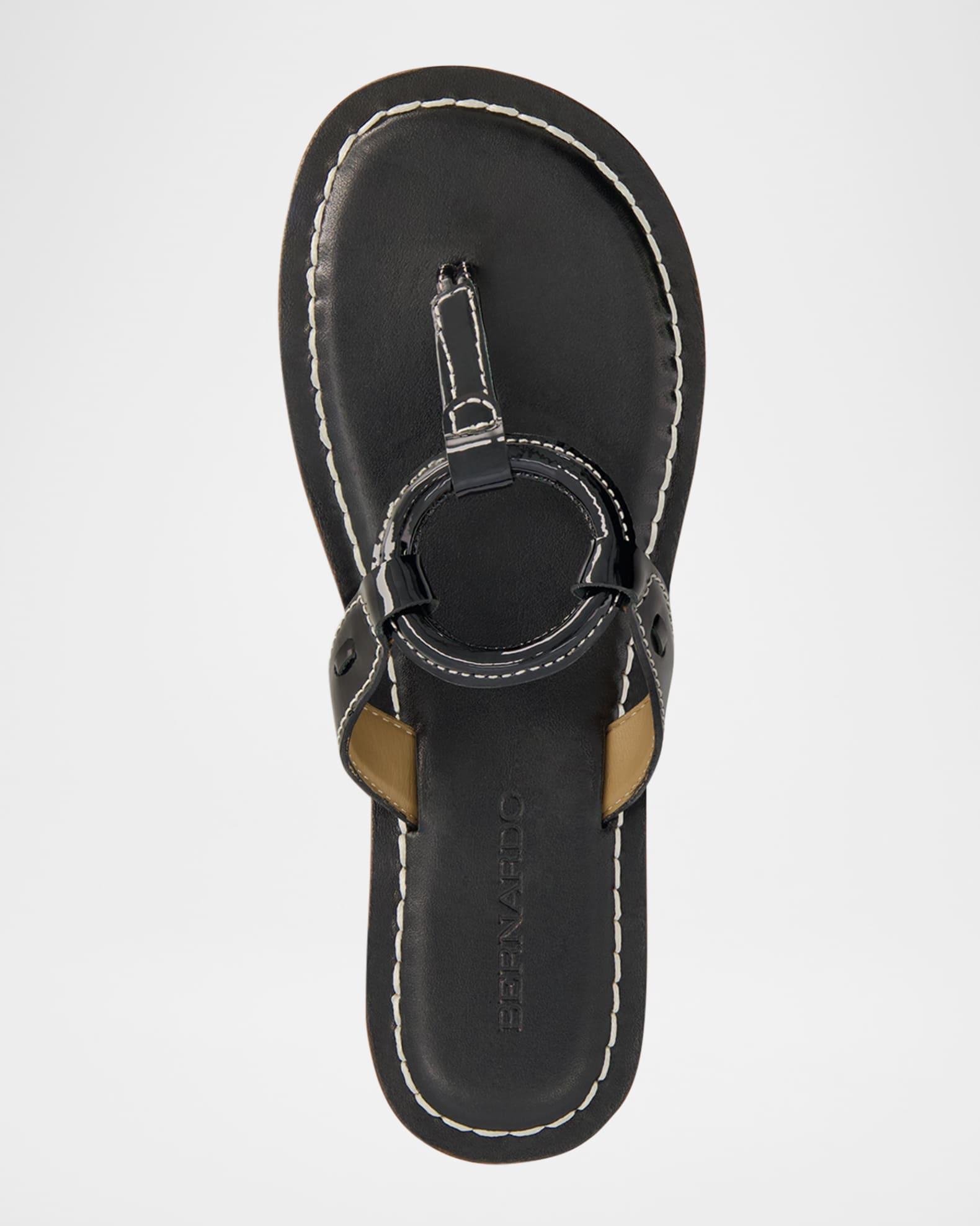 Bernardo "Matrix" archive-inspired patent leather sandal demonstrates how the details make the difference, thanks to its original upper construction with signature ring and comfort-driven padded footbed — both featuring Bernardo’s iconic stitching. Flat heel Thong strap Slide style Leather outsole Lining: Leather Professional cleaning recommended Made in Brazil