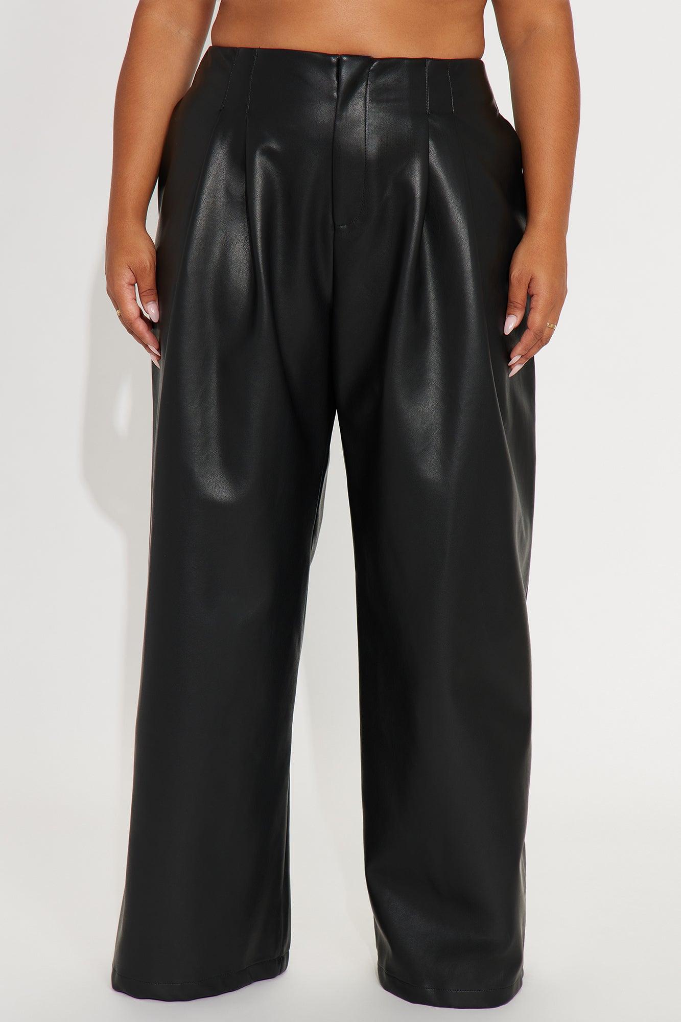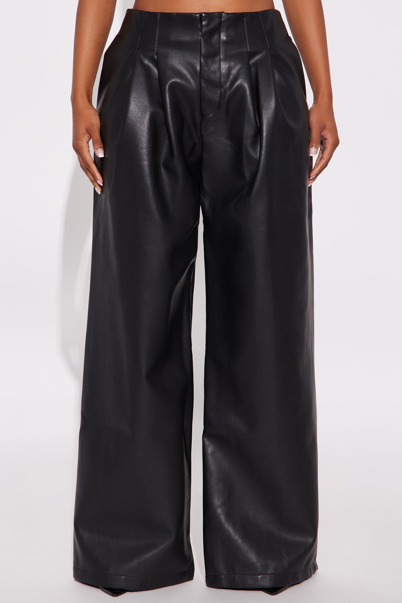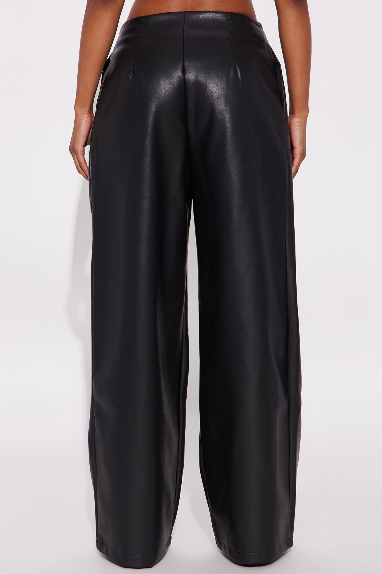 Mave Faux Leather Pleated Wide Leg Pant 32″ - Black Female