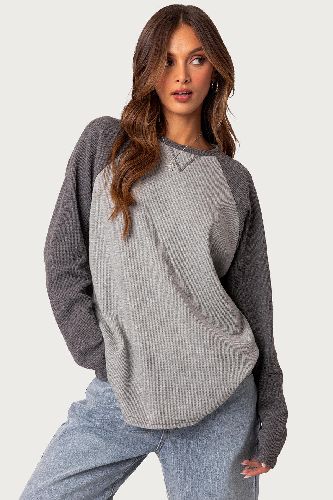 PRODUCT INFO Top Oversized fit Raglan design Waffle fabric Cotton, Polyester Model wears size S Model height is 5'9 Item care: Wash with similar color