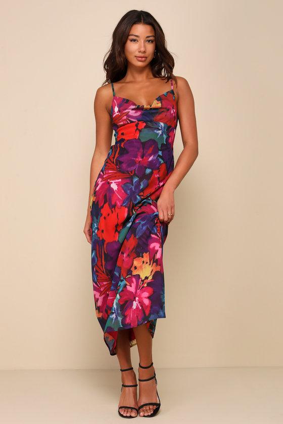 Everyone will admire your sophisticated silhouette in the Lulus Meant to Amaze Black Multi Abstract Floral Cowl Slip Maxi Dress! Lightweight woven chiffon boasts a stunning abstract floral print as it shapes adjustable spaghetti straps and a bodice with a drapy cowl neckline. Slip-style silhouette continues with a figure-skimming waist and a lightly flaring maxi skirt. Hidden zipper/clasp at back.