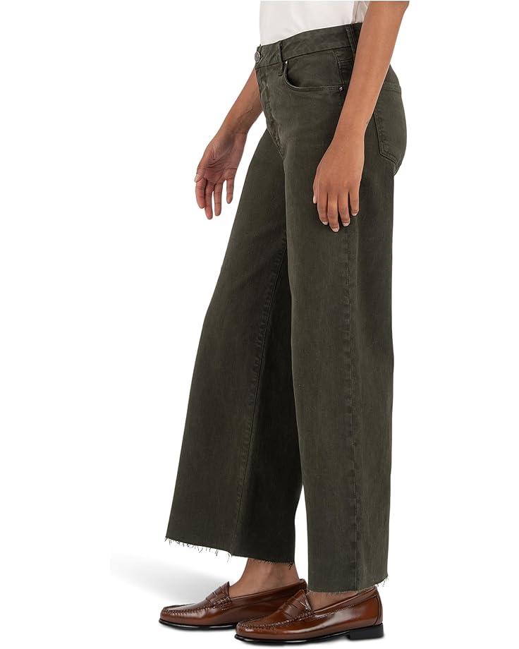 Step up both comfort and style wearing the KUT from the Kloth™ Meg High-rise Fab Ab Wide Leg Raw Hem In Sherwood Forest Jeans. It is laid-back with the perfect amount of style, wide leg fitted through the hips, and finishes off with an easy to style wide leg for a modern take on this trending silhouette. The high-rise jeans features belt loops, a zip-fly with button closure, and the classic five-pocket design.