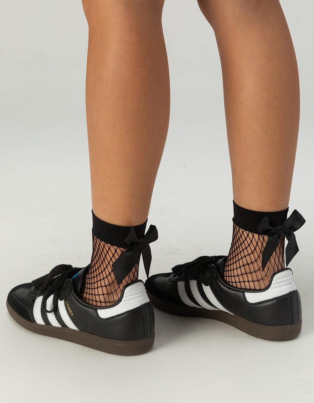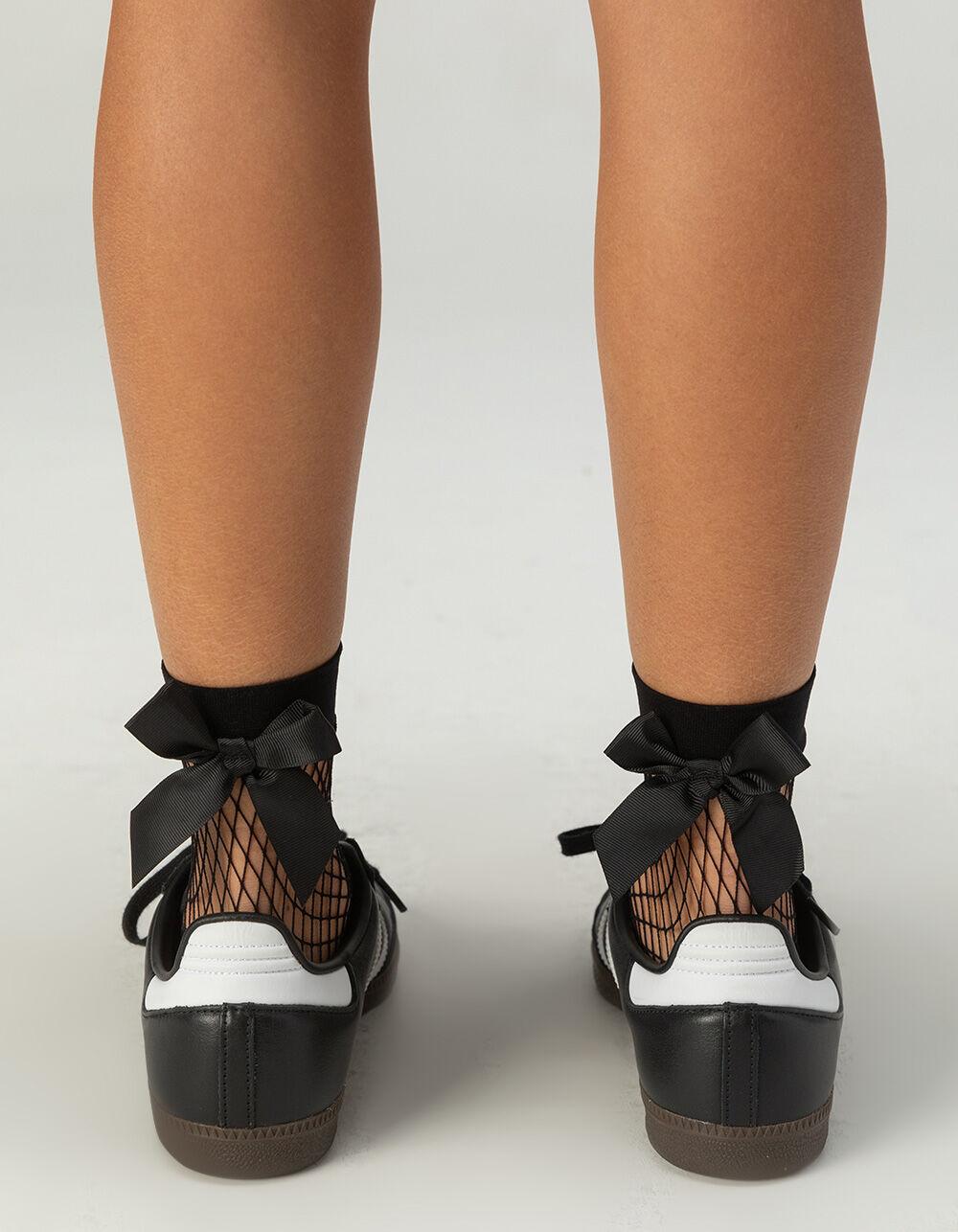 MeMoi Bow Maxi Fishnet Anklet Socks. It’s all in the details, isn’t it? That’s how a black satin-esque bow at the ankle takes center stage on a sock already designed for turning heads. Maxi-net from ankle to toe leads into a comfort mini-net, so your toes stay in a neat little line. Layer 'em up over solid-colored socks or rock 'em alone. Ankle length. Pre-tied bow on the back. Comfort mini-net at the toe. 100% Nylon. Machine wash. Imported.