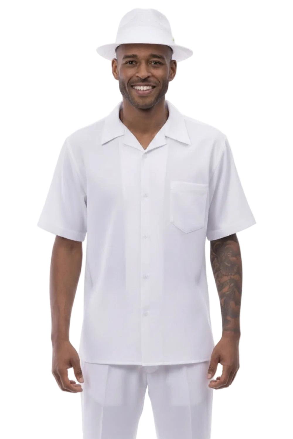 Men's 2 Piece Walking Suit Summer Short Sleeves in White Male
