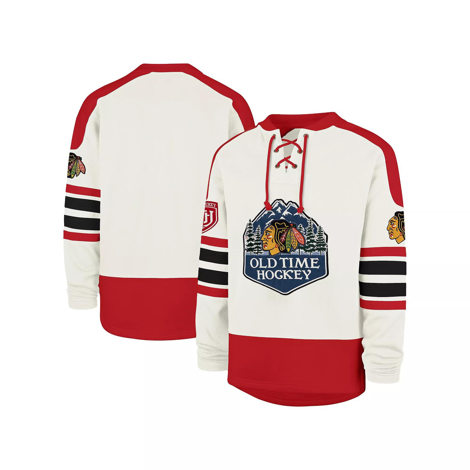 As the temperature drops, bundle up in this Pond Hockey Trio Eternal Lacer Sweatshirt from '47 when you support the Chicago Blackhawks. Featuring fleece lining for added warmth and comfort, this midweight sweatshirt is perfect for moderate temperatures, whether you're at the rink or watching the game from home. The sewn-on stripes and embroidered fabric applique Chicago Blackhawks graphics elevate your look, while the lace-up V-neck with metal grommets adds a touch of vintage flair. Imported. Brand jocktag at bottom left hem. Pullover. Embroidered fabric applique graphics. Fleece lined for added warmth and comfort. Hooded. Machine wash, tumble dry low. Material: 100% Cotton. Rounded droptail hem. Sewn-on stripes. Midweight sweatshirt suitable for moderate temperatures. Officially licensed. Lace-up V-neck with metal grommets. Long sleeve. True to size fit. Brand: '47. Color: Beige. Gender: male. Age Group: adult.
