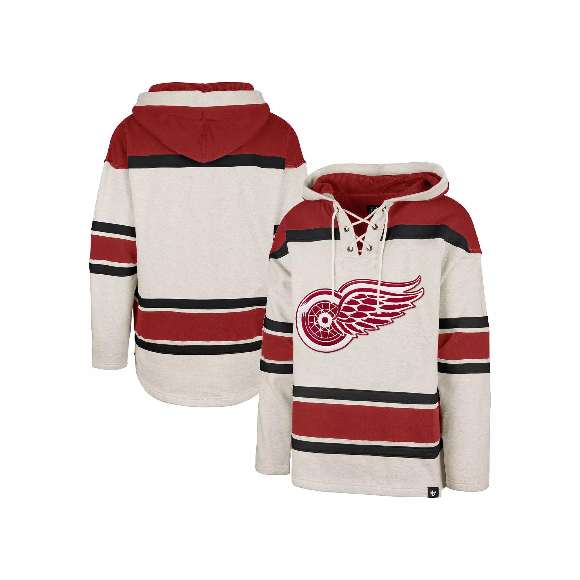 Add an exciting piece of Detroit Red Wings gear to your rotation with this Rockaway pullover hoodie from 47. Not only does it feature embroidered team graphics across the chest, but the sewn-on stripes provide an abundance of recognizable team colors. The lace-up neckline makes this stylish top the perfect option for cheering the Detroit Red Wings on to victory.