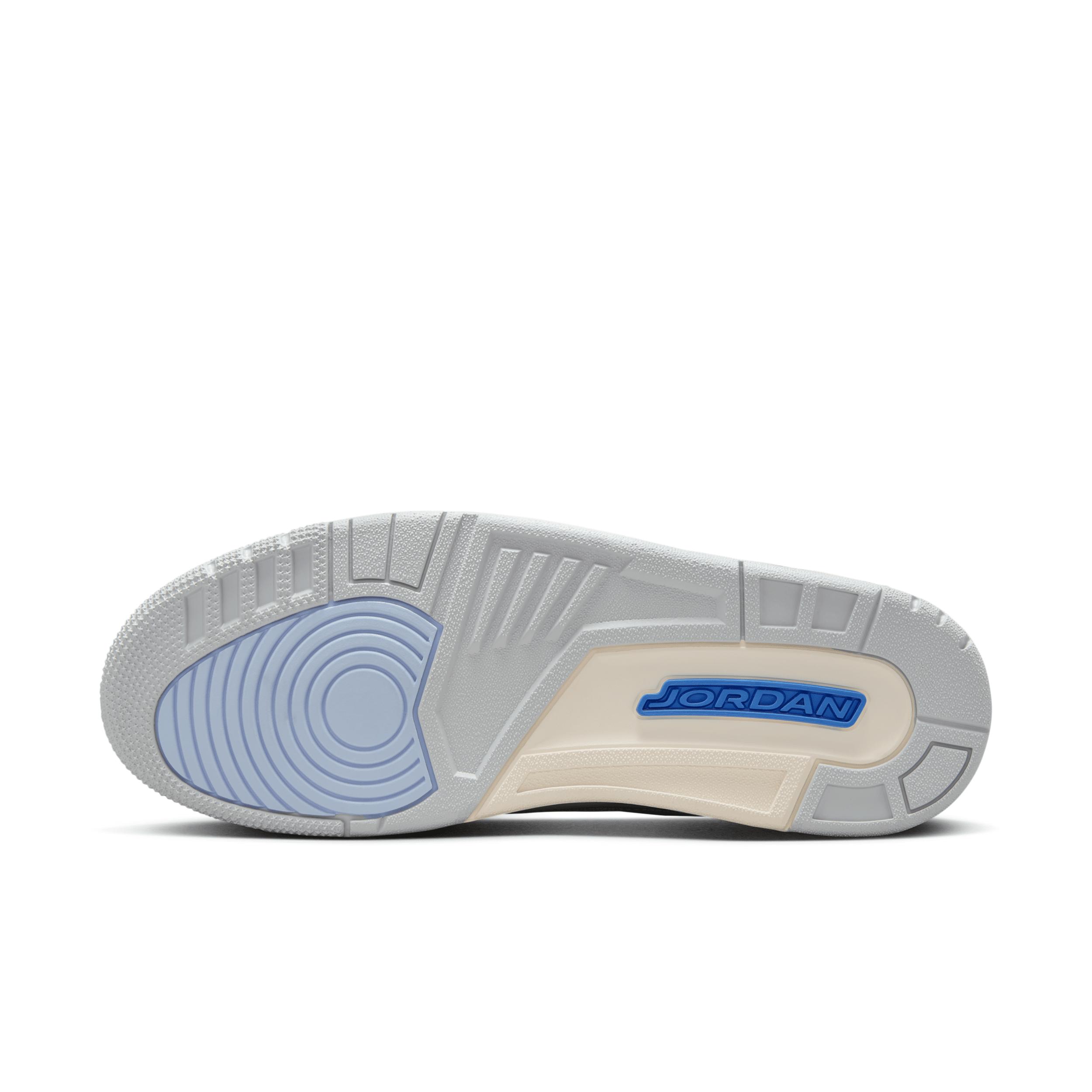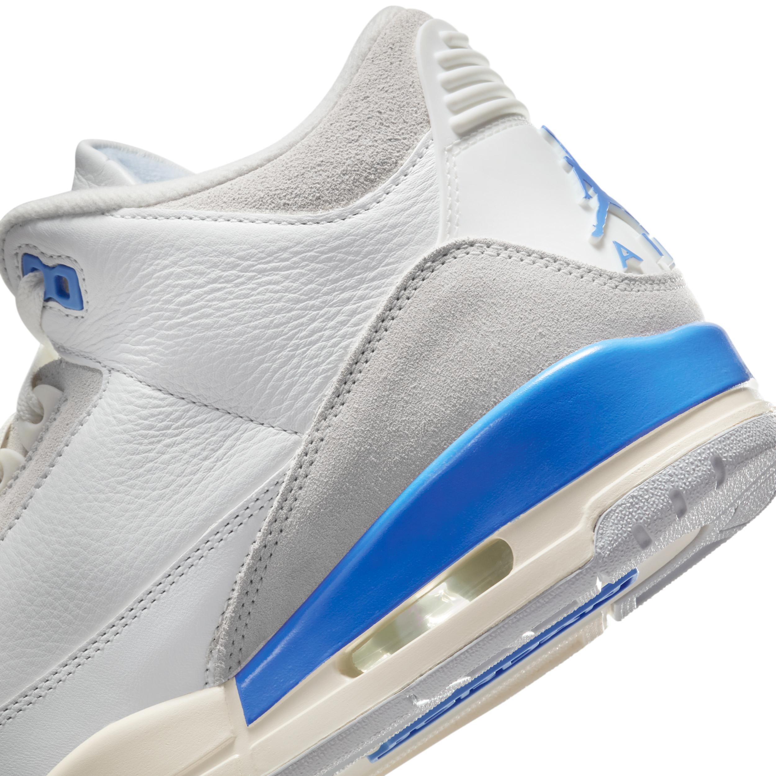 Clean and supreme, the AJ3 returns with all of its classic style and grace. Quality leather in the upperâwith that luxurious elephant print textureâcombines with visible Nike Air in the sole to make a comfortable, everyday icon. Benefits:Genuine and synthetic leathers offer a durable, supportive feel. Foam midsole with Air-Sole unit in the heel and forefoot for street-ready cushioning. Rubber outsole provides durability and traction. Style: CT8532; Color: Summit White/Legend Blue/Photon Dust/Hydrogen Blue; Size: 13; Gender: Male; Age Group: Adult | Air Jordan 3 Retro "Lucky Shorts" Men's Shoes in White, Size: 13 | CT8532-101