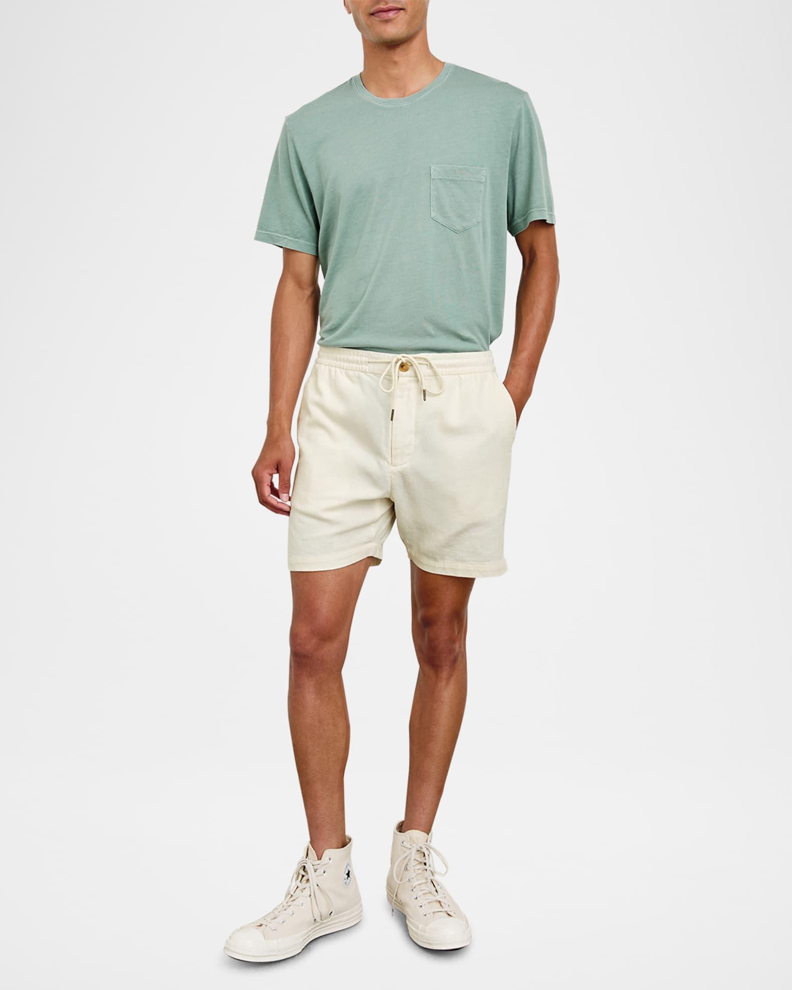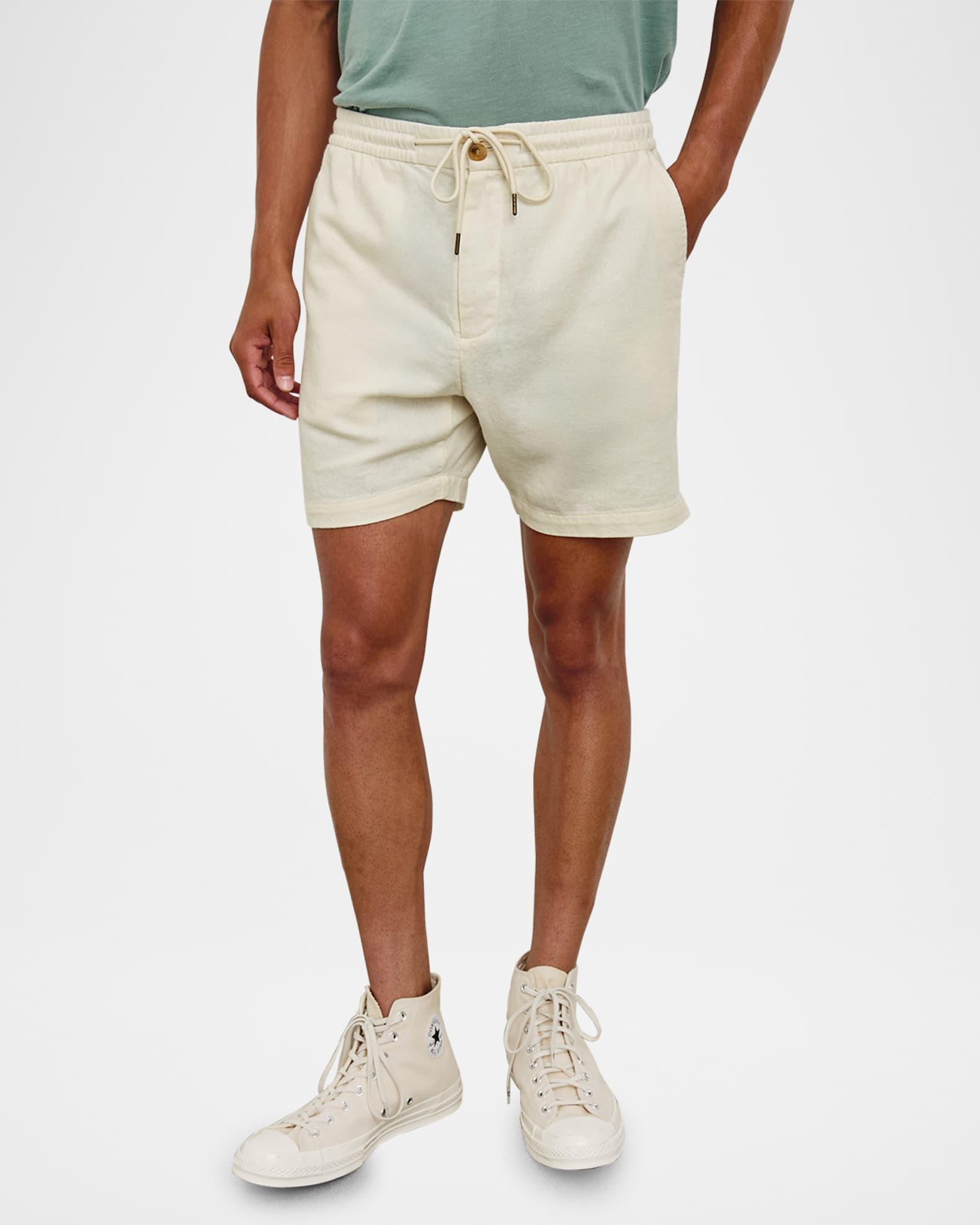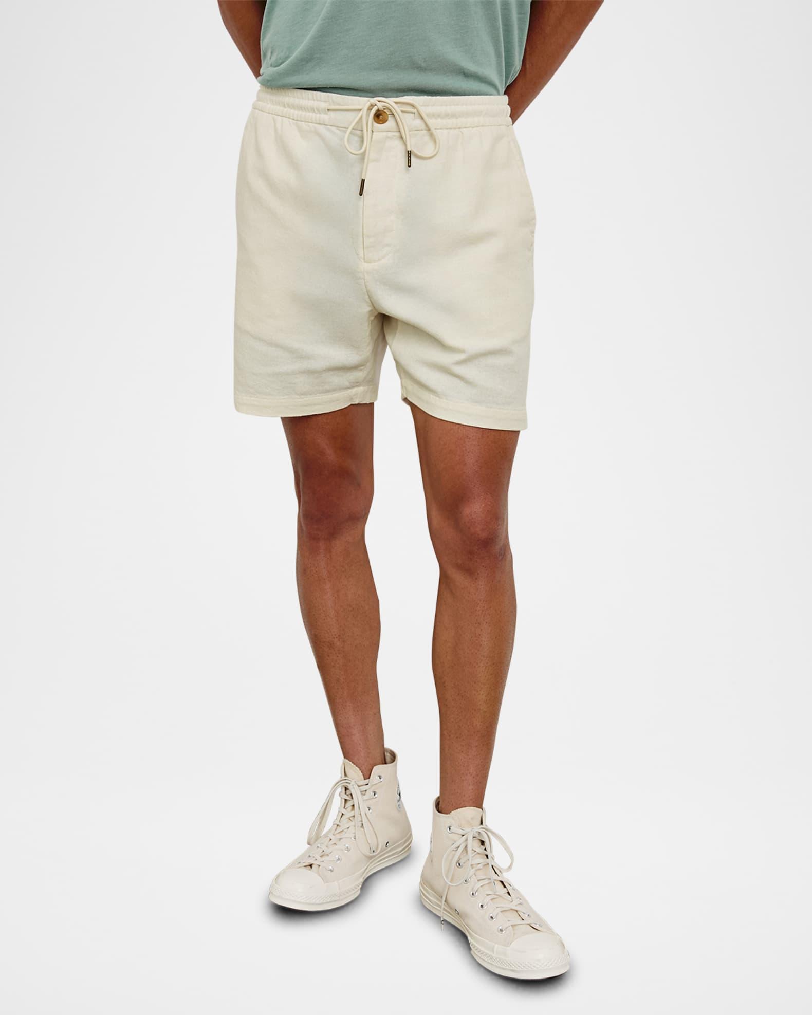 Rails "Archer 6" shorts in a breathable cotton and linen blend Regular rise Flat front Side slip pockets Back welt pocket Elasticized drawstring waistband Button-zip fly Pull-on style Classic fit Cotton/linen Machine wash tumble dry Imported