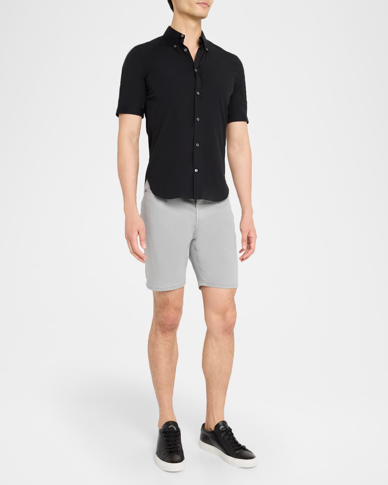 monfrere "Brando" shorts in lightly brushed twill that lends to a soft and supple hand feel Regular rise Flat front Five-pocket style Relaxed fit at the hips Tailored thighs Hem hits above the knee Button-zip front; belt loops Cotton/polyurethane Machine wash cold, line dry Imported