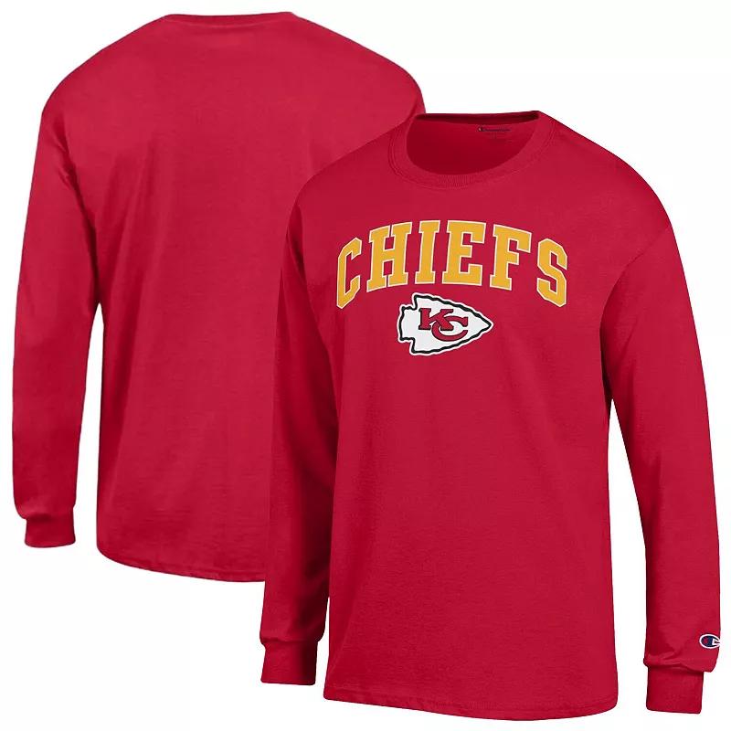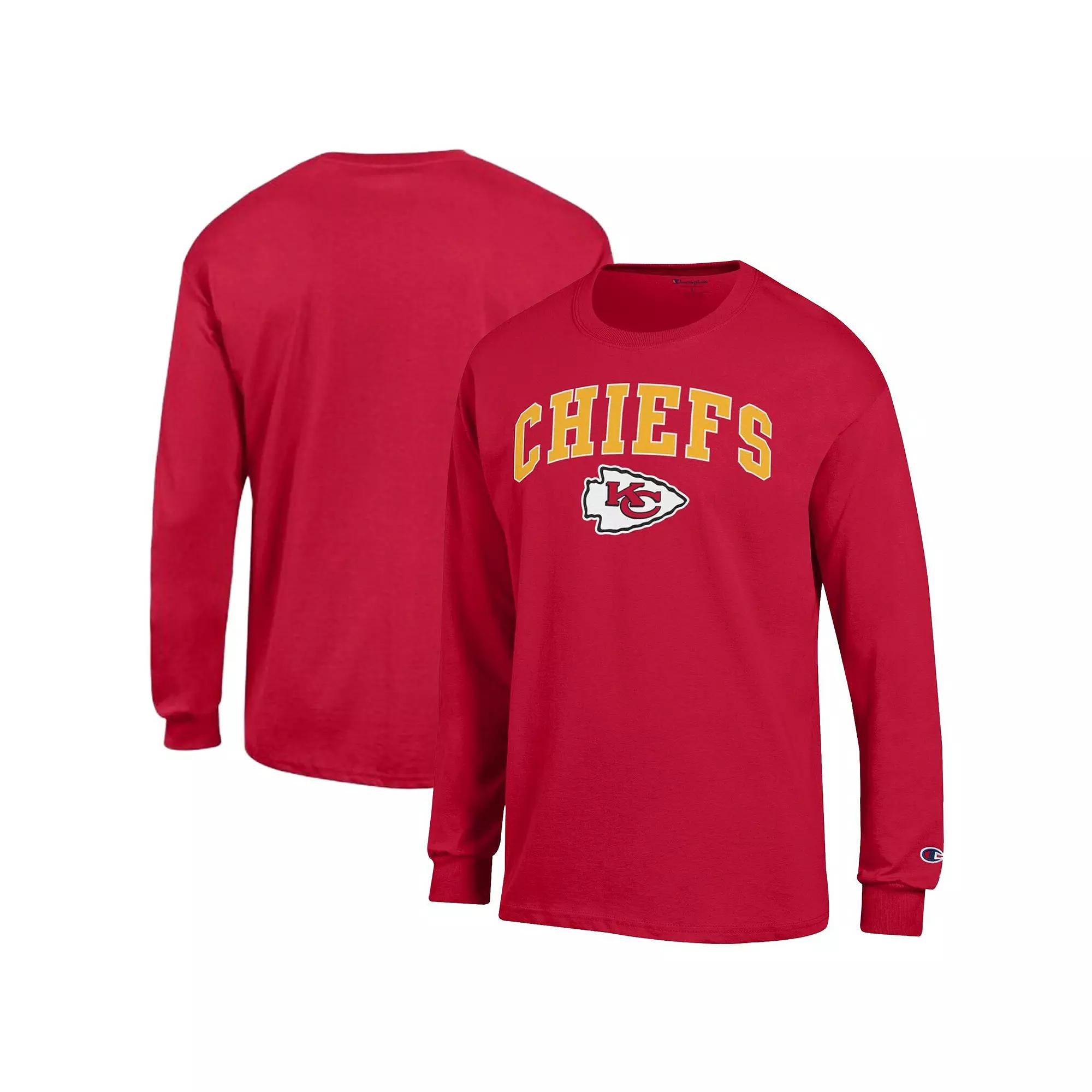 Feel the pulse of Kansas City Chiefs kickoff with this Arch Over Logo Long Sleeve T-Shirt from Champion. The classic screen printed design broadcasts your tenacious team pride, while the drop shoulder construction offers a relaxed, comfortable fit perfect for layering on those crisp game days. Champion's commitment to quality ensures this 100% Cotton long sleeve will be a durable staple in your Kansas City Chiefs wardrobe season after season. Brand: Champion. Crew neck. Rib-knit neckline to help prevent stretching and maintain shape. Screen-print arched team wordmark over logo at chest. Material: 100% Cotton. Tagless collar with interior taping for a more comfortable feel. Officially licensed. Long sleeve. Dropped shoulders provide a laid-back feel and enhanced freedom of movement. Machine wash, tumble dry low. Imported. Color: Red. Gender: male. Age Group: adult.