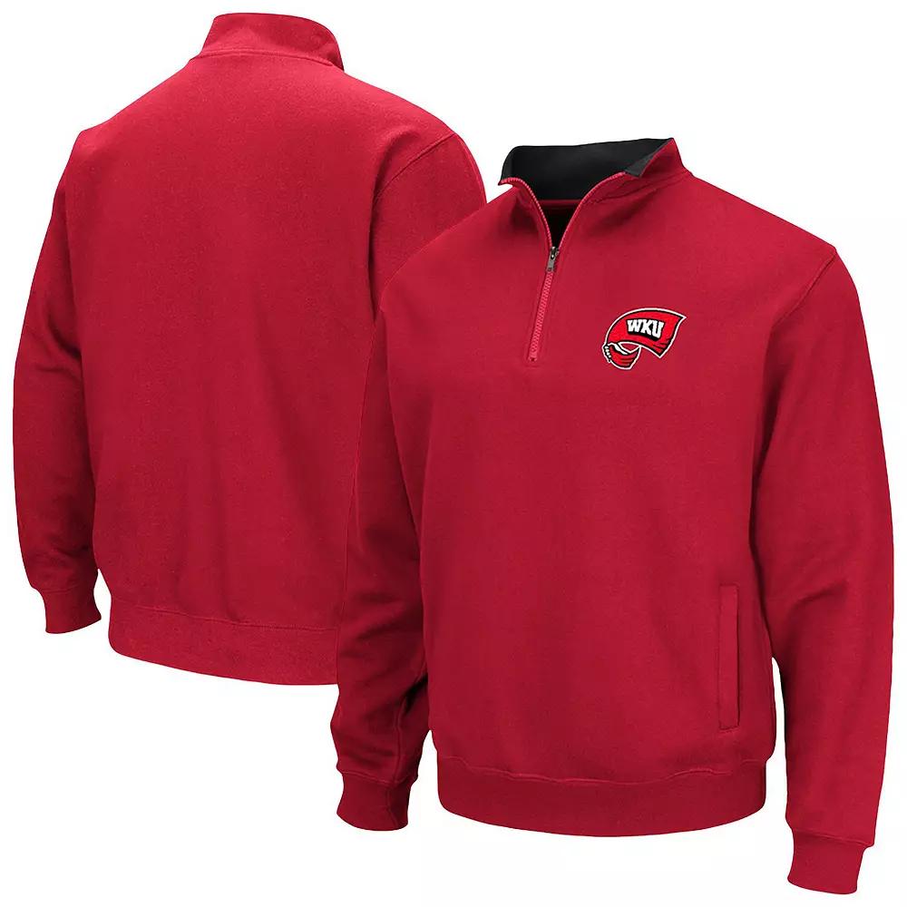 Show your support for your favorite college team in this Western Kentucky Hilltoppers Tortugas Logo Quarter-Zip Jacket from Colosseum. The fleece-lined interior ensures warmth and comfort, making it perfect for moderate temperatures. Plus, the embroidered fabric applique of the Western Kentucky Hilltoppers logo showcases your team pride in style. Material: 70% Cotton/30% Polyester. Officially licensed. Two front pockets. Imported. Machine wash, tumble dry low. Fleece-lined, midweight jacket suitable for moderate temperatures. Brand: Colosseum. Olympic collar and rib-knit cuffs and waistband. Long sleeve. Embroidered fabric applique. 1/4-Zip. Size: XL. Color: Wkn Red. Gender: male. Age Group: adult.