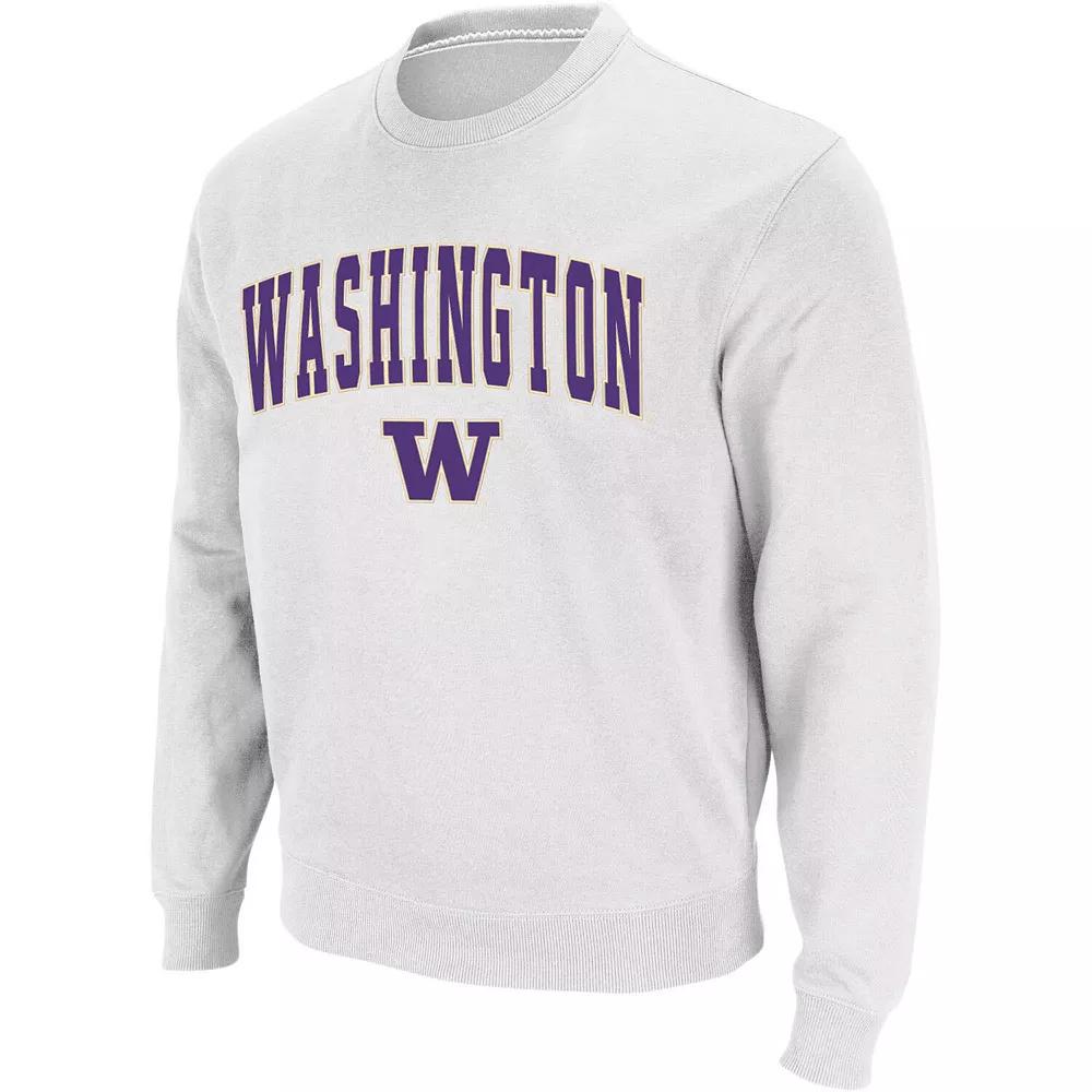 Its not hard to come to the conclusion that youre a hardcore Washington Huskies fan. This season, raise your fandom to a new level when you put on this Washington Huskies Arch & Logo Tackle Twill pullover sweatshirt from Colosseum. This pullover features a comfortable fit and crisp Washington Huskies graphics to help emphasize your team pride.Its not hard to come to the conclusion that youre a hardcore Washington Huskies fan. This season, raise your fandom to a new level when you put on this Washington Huskies Arch & Logo Tackle Twill pullover sweatshirt from Colosseum. This pullover features a comfortable fit and crisp Washington Huskies graphics to help emphasize your team pride.Crew neckOfficially licensedImportedMachine wash, tumble dry lowLong sleeveEmbroidered graphicsMaterial: 70% Cotton/30% PolyesterBrand: ColosseumSizing Tip: Product runs large. We recommend ordering one size smaller than you normally wear.Midweight sweatshirt suitable for moderate temperaturesRib-knit cuffs, collar and waistbandTackle twill appliquePullover Color: White. Gender: male. Age Group: adult.