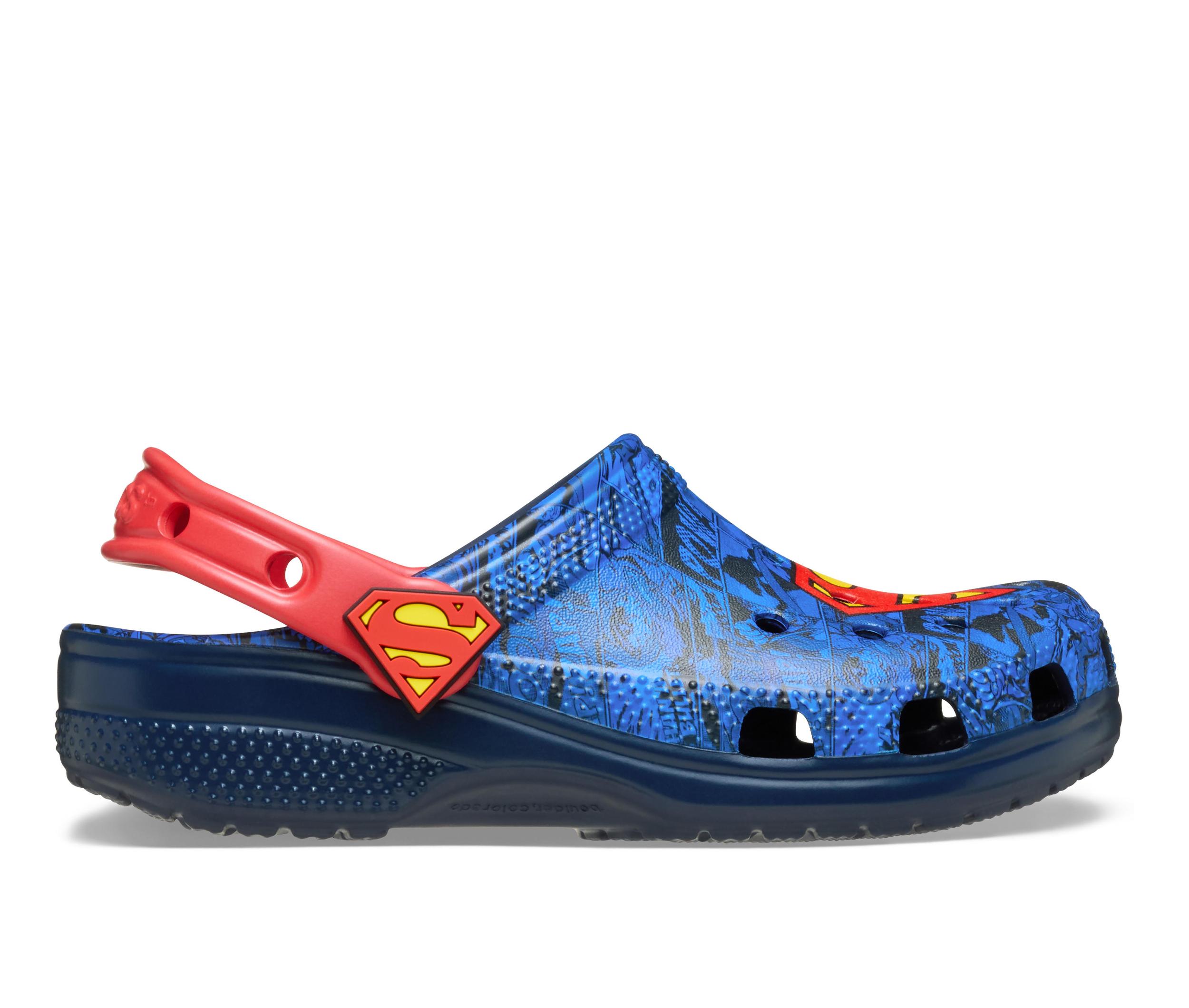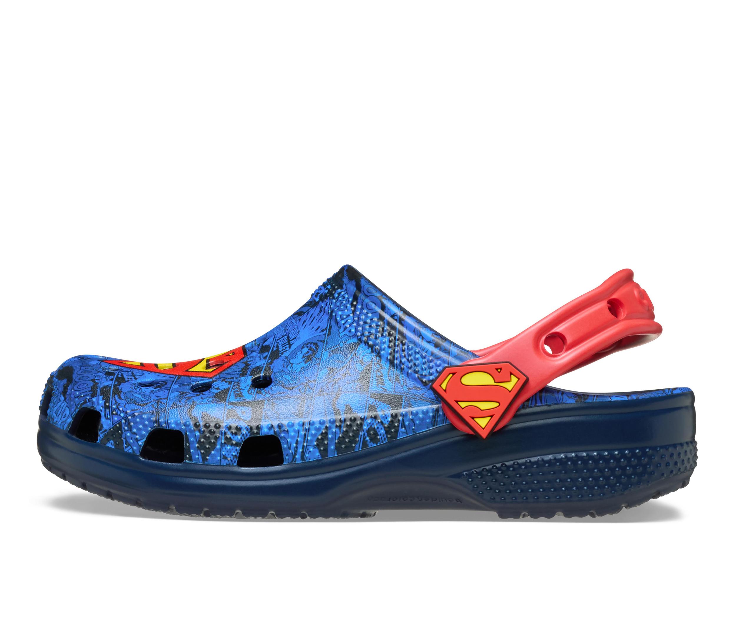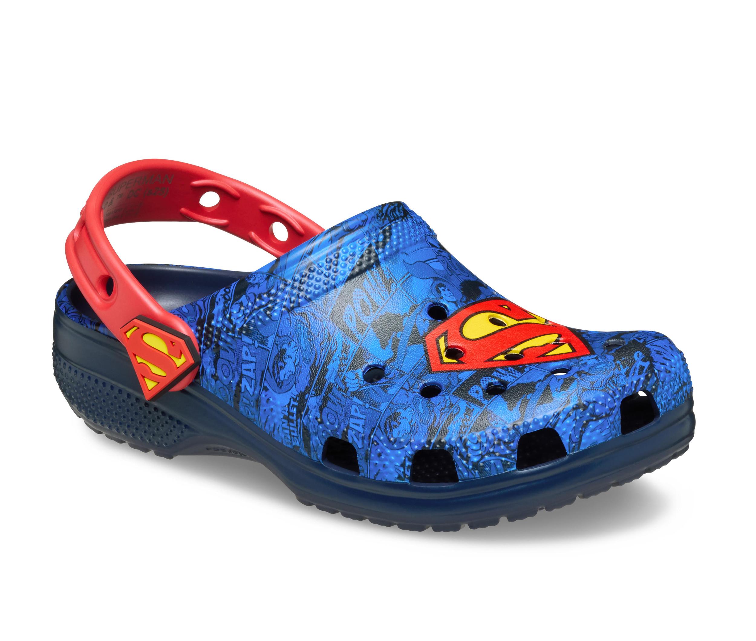 The Superman collection has landed. And the classic Super Hero inspired this Classic Clog. An allover comic book print serves as the background. But the real hero of the design is the Superman S-shield on the upper and rivets. It’s style with a capital “S”.