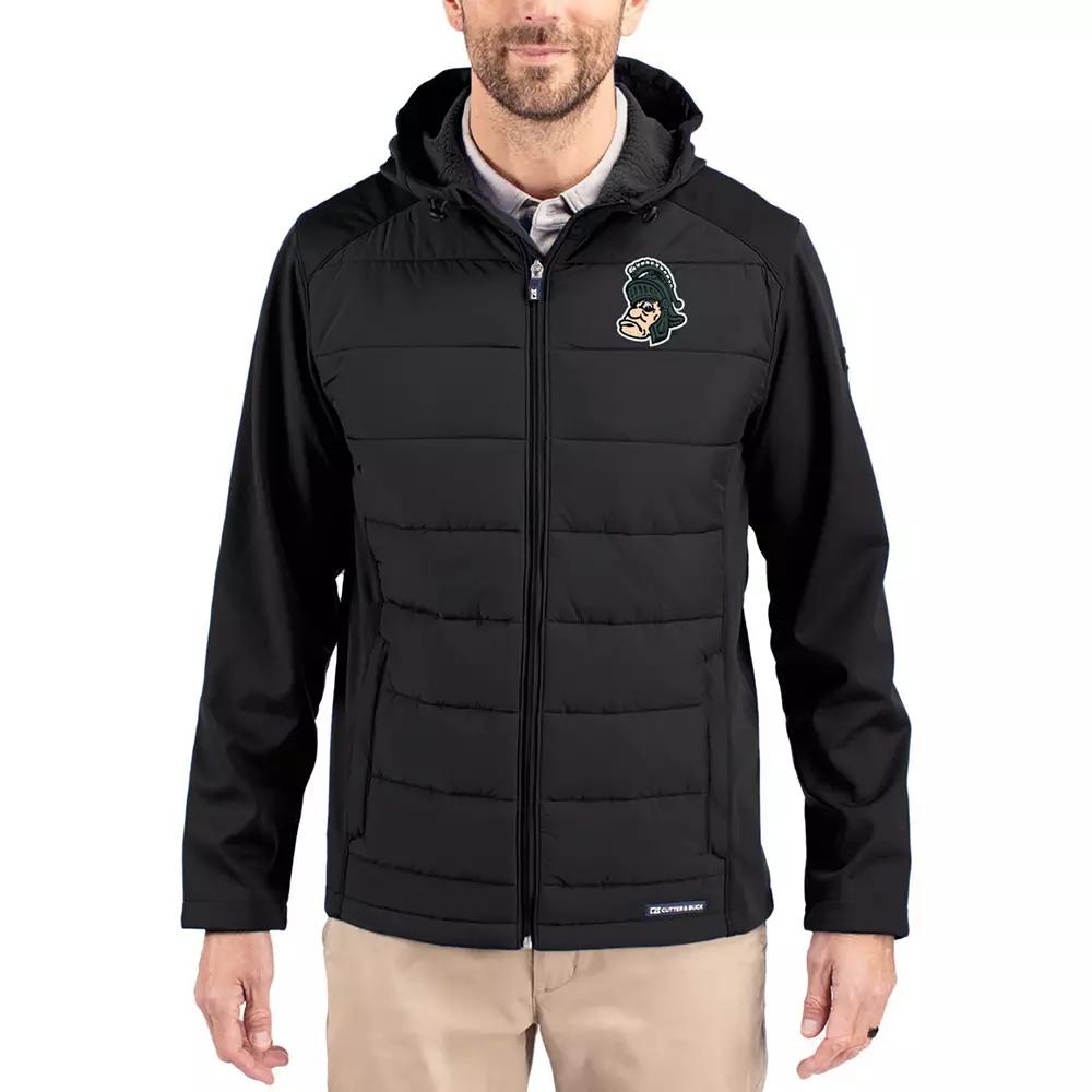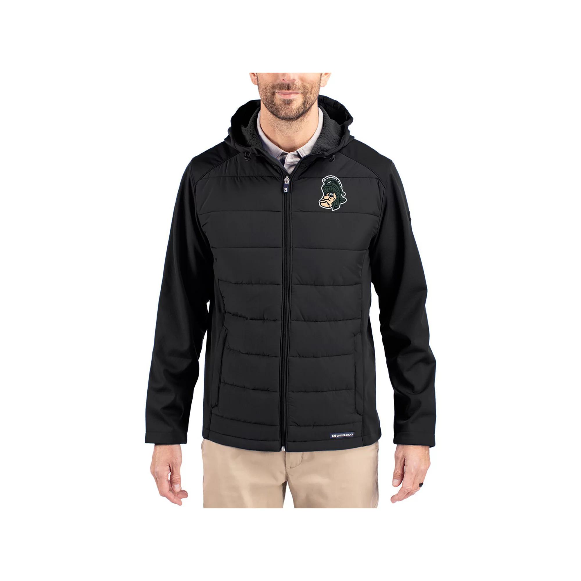 Gear up and show off your Alabama Crimson Tide pride with this Cutter & Buck Evoke Hybrid Eco Softshell Recycled Full Zip Hooded Jacket. This middleweight jacket is crafted with a bonded honeycomb softshell and a durable water-repellent (DWR) finish to keep you dry and comfortable. The soft fleece interior, made from an average of 25 recycled plastic bottles, features PrimaLoft Insulation designed to provide warmth while being environmentally friendly. Whether in the stands or running around town, the embroidered Alabama Crimson Tide logo on the right chest shows which team you'll be rooting for come game time. Brand: Cutter & Buck. Rounded hem. Embroidered team logo at left chest. Machine wash, tumble dry low. Hooded. Soft fleece interior with performance rating of 3000K waterproof / 6000K breathability. Imported. Long sleeve. Full Zip. Bonded honeycomb softshell with durable water repellent (DWR) finish keeps you dry and warm. Material made from an average of 25 recycled plastic bottles. Midweight jacket suitable for moderate temperatures. Mock neck with zipper garage. Two front zippered pockets secure small items. Officially licensed. Cutter & Buck trims and locker loop for convenient storage option. PrimaLoft Insulation is designed to provide warmth and comfort while also offering high-level, technical performance. Color: Black. Gender: male. Age Group: adult. Material: COTTON.
