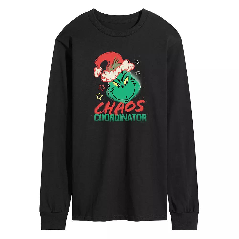 He will love showing off his style with this Mens Dr. Seuss The Grinch Chaos Coordinator Long Sleeve Graphic Tee. FEATURES Crewneck Long sleeveFABRIC & CARE Solid Colors: Cotton ; Heather Colors: Cotton/Polyester Machine wash Imported Size: XL. Color: Black. Gender: male. Age Group: adult.