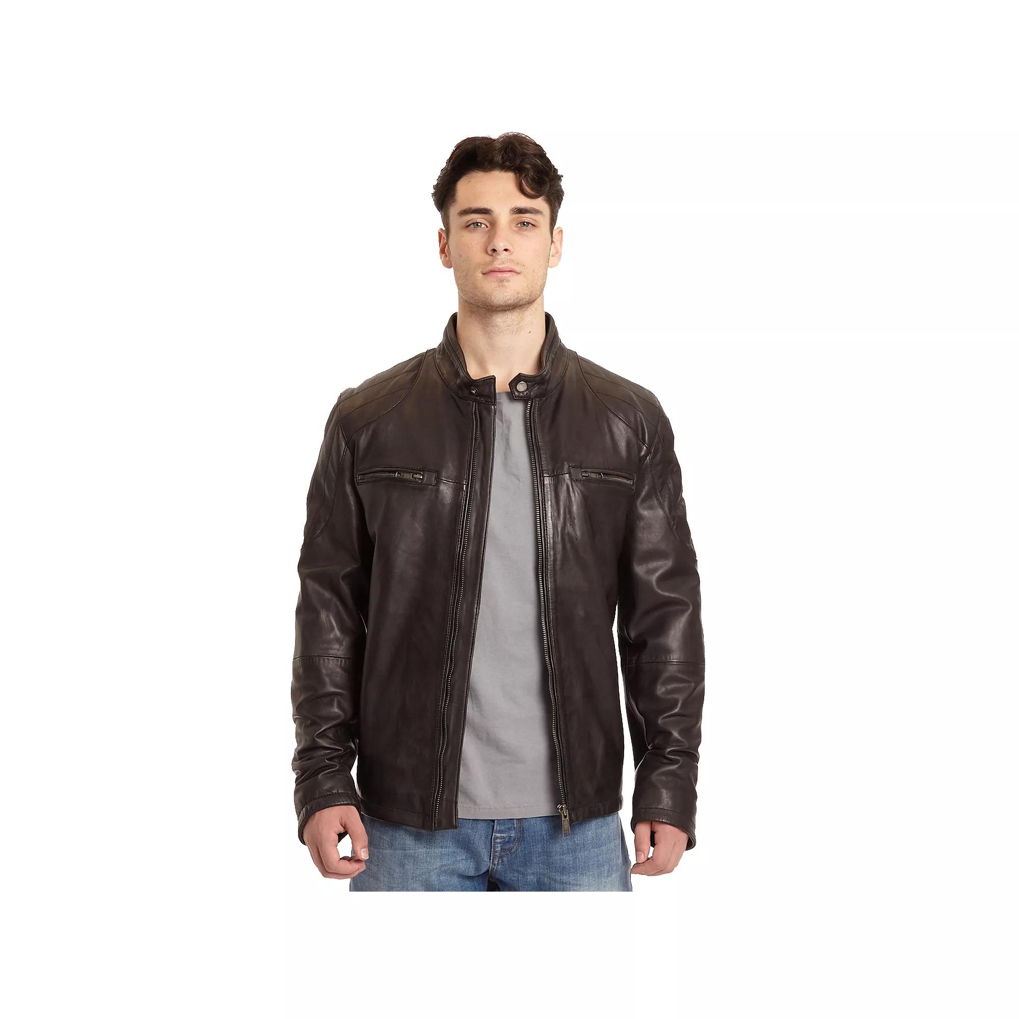 Higher ground. Elevate your style in this men's lamb leather moto jacket from Excelled. Higher ground. Elevate your style in this men's lamb leather moto jacket from Excelled. Midweight insulation Moto styling Zippered pockets Self-shell banded bottom Zipper front Multiple interior and exterior pockets Long sleevesFIT & SIZING Fitted Approximate 26-inch center back length 26" (size M)FABRIC & CARE Outer shell: leather Lining, fill: polyester Professional leather clean Imported Color: Black. Gender: male. Age Group: adult. Pattern: Solid. Material: Leather Faux Leather.
