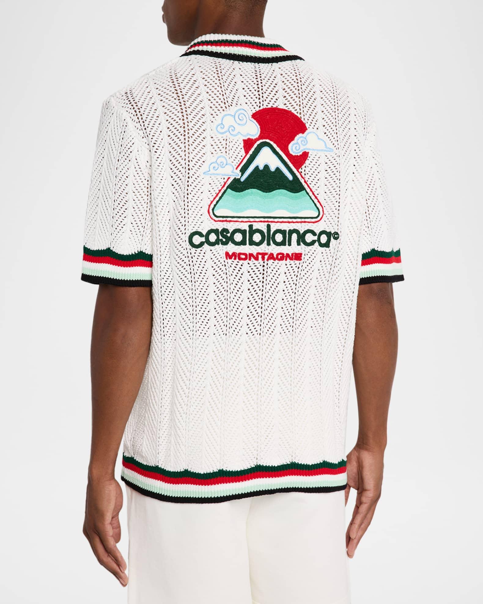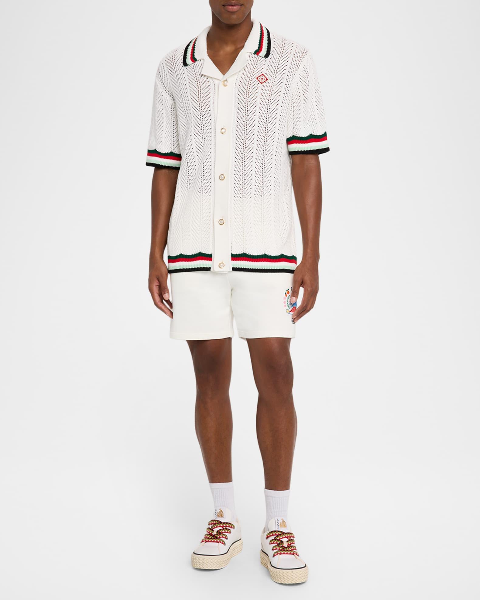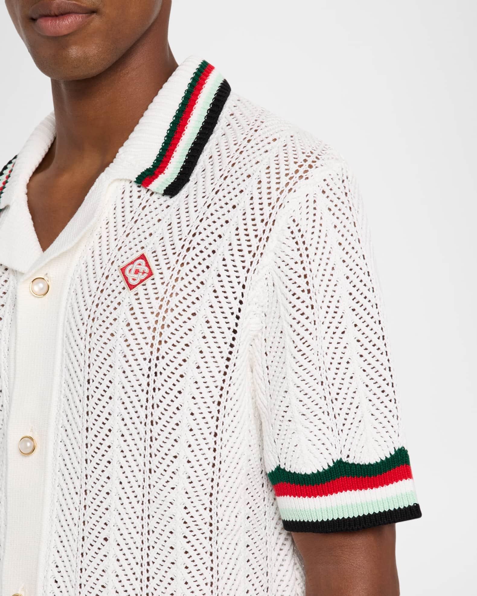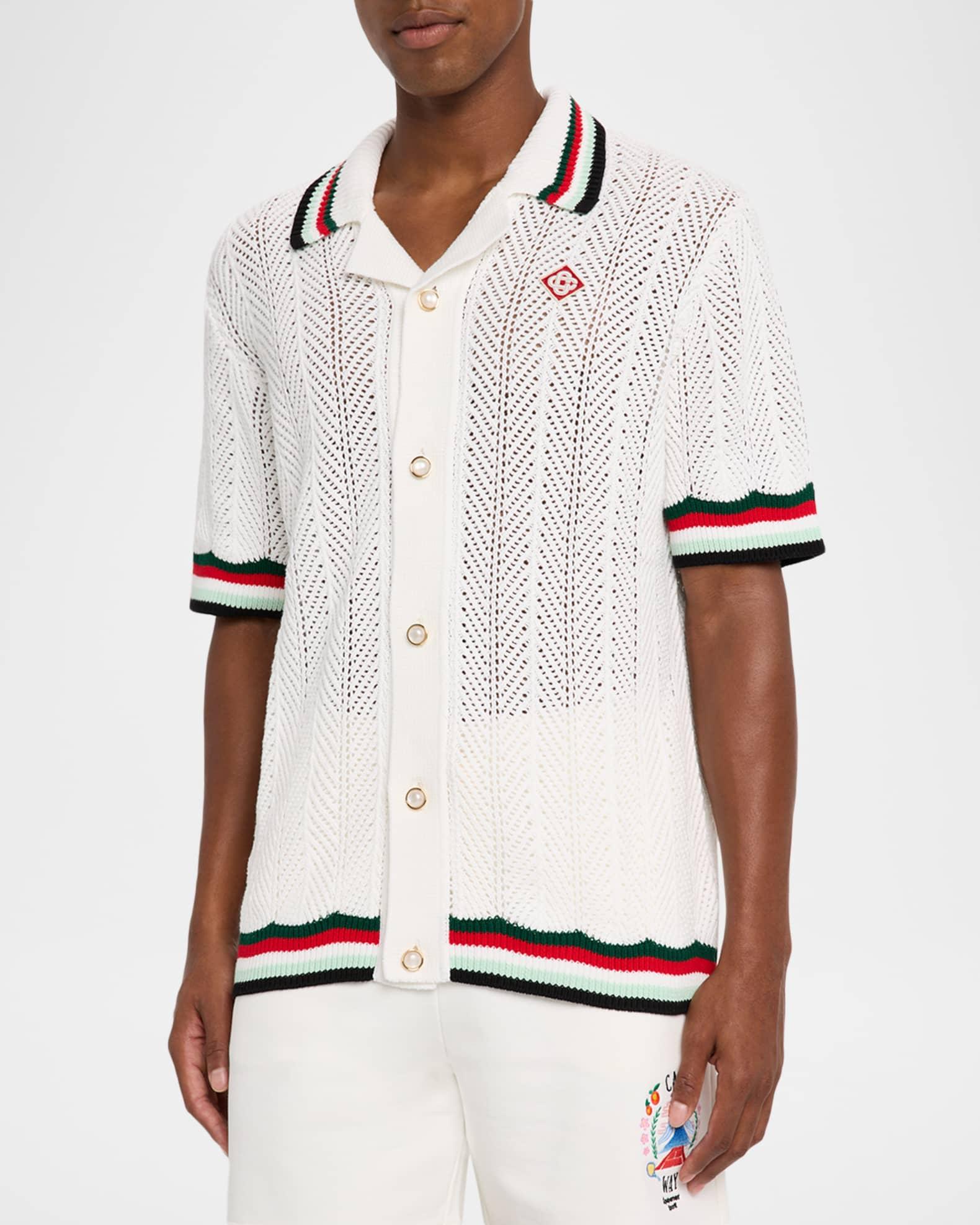 Men's Faux Crochet Stripe-Trim Short-Sleeve Shirt