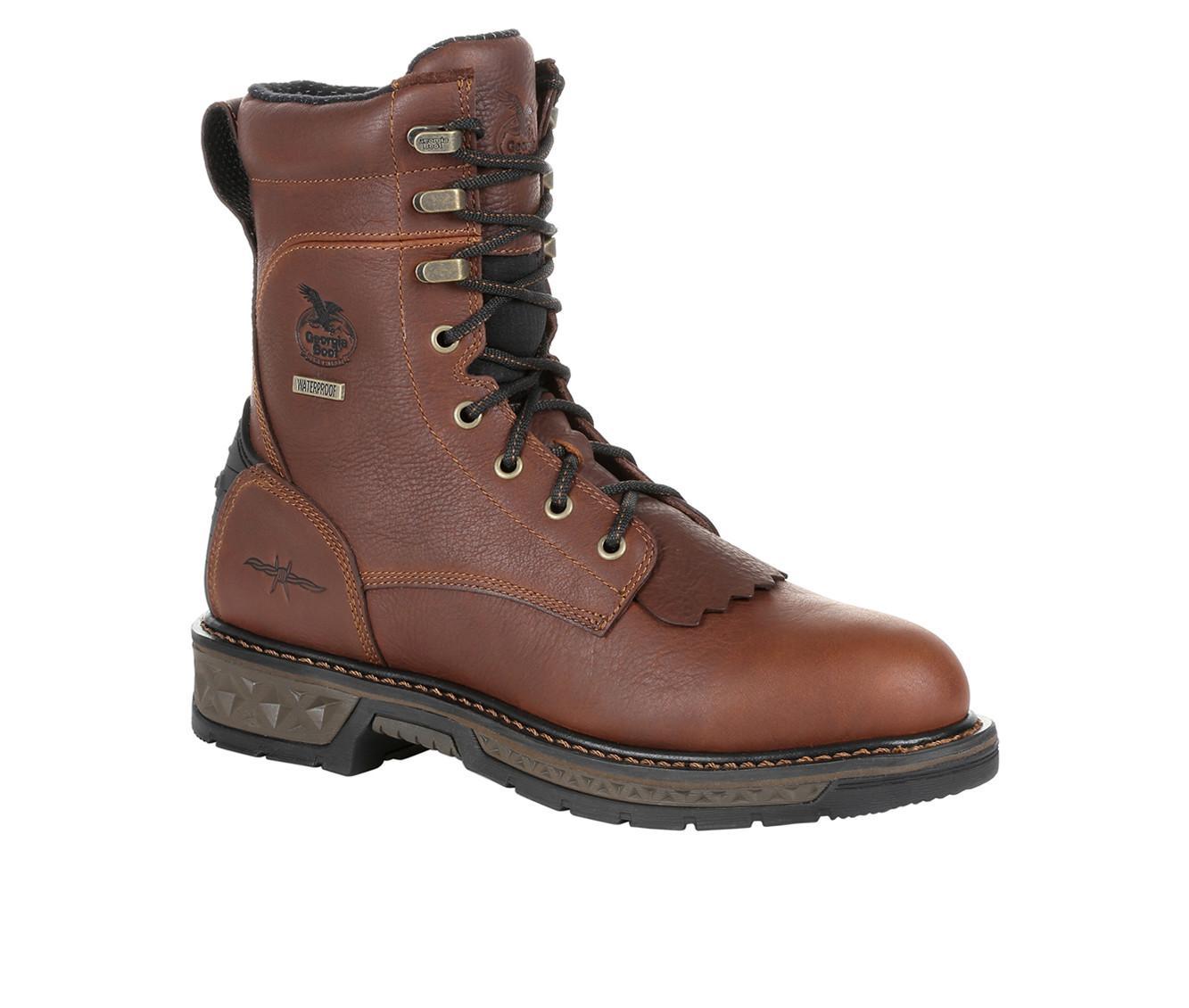 Take the long days head on in this Georgia Boot Carbo-Tec LT Lacer farm & ranch boot. The upper is constructed from full-grain pasture proof SPR leather, which means it is very resistant against caustic chemicals and acids typically found in barnyard environments. The kiltie can be worn for a traditional lacer look or remove it for a simple lace up style.