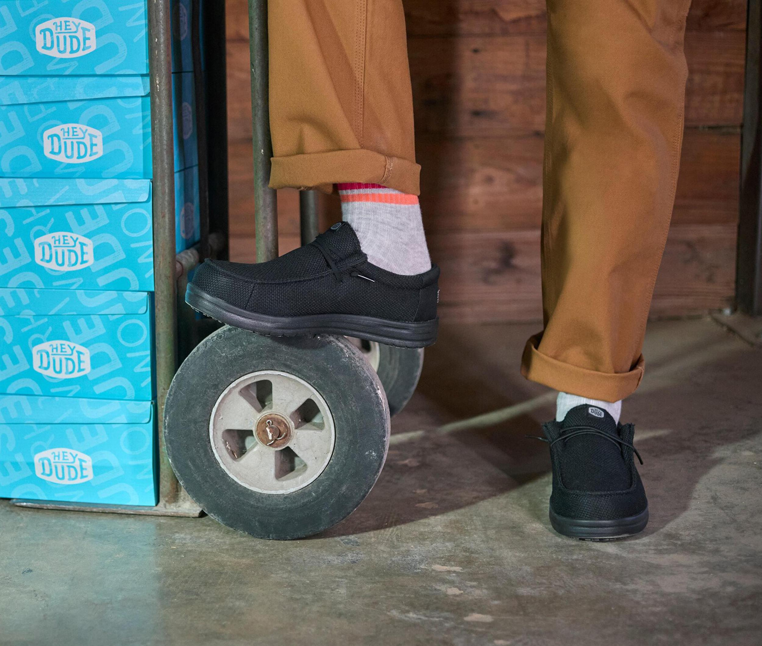 The Men's HEYDUDE Wally Work CT Work Shoes blend the brand's signature comfort with essential workplace safety features. Designed for professionals seeking lightweight protection, these shoes feature a breathable mesh upper treated with a water-repellent finish, ensuring durability and ease of maintenance. The composite safety toe meets ASTM F2413 standards, providing non-metallic protection without the weight of traditional steel toes. A slip-resistant rubber outsole offers reliable traction on various surfaces, while the elastic laces and relaxed fit ensure all-day comfort and easy on-and-off wear. Reflective details enhance visibility in low-light conditions, making these shoes a practical choice for demanding work environments.