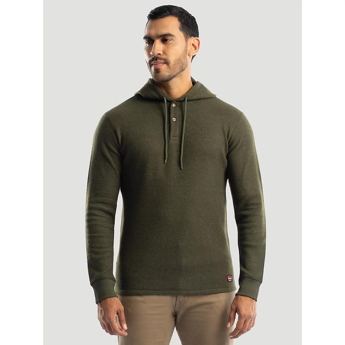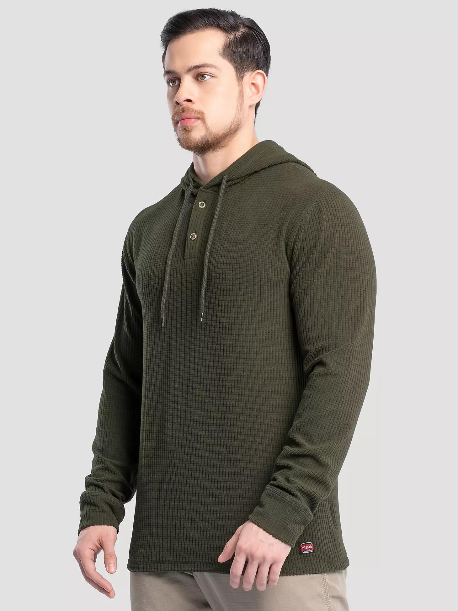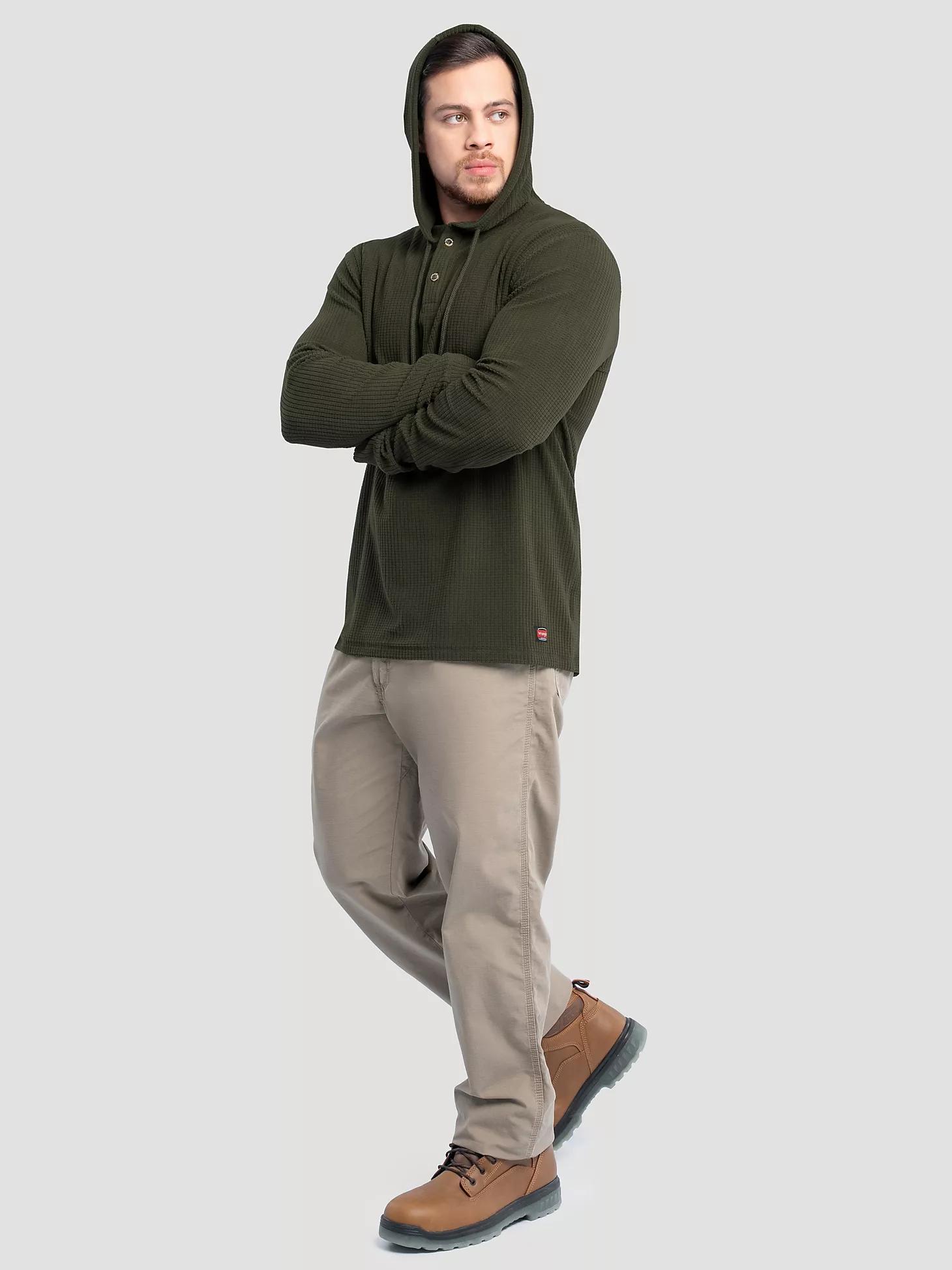 Built for warmth, designed to move. This fleece Henley hoodie features a soft grid-textured knit with just the right stretch. A two-button placket, adjustable hood, branded neck tape, and flex storm cuffs offer function, comfort, and a modern edge—perfect for layering on the job.