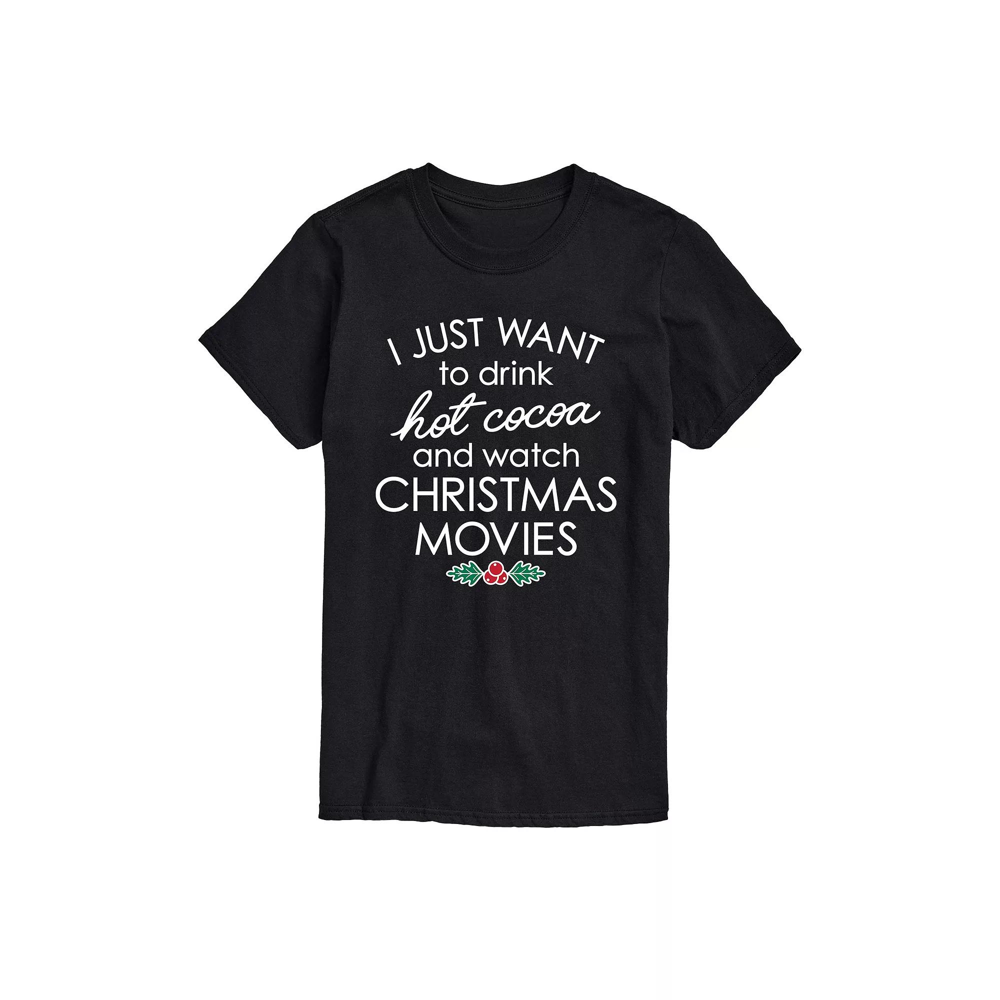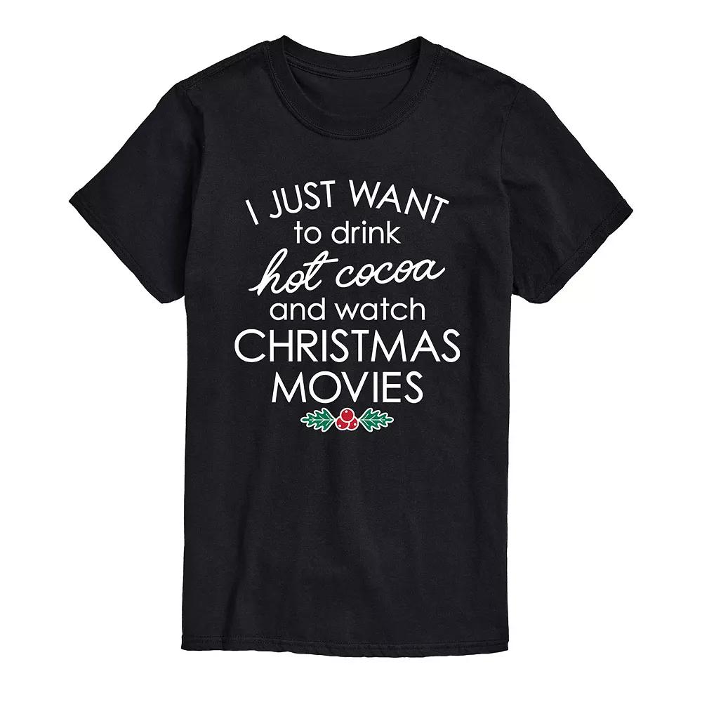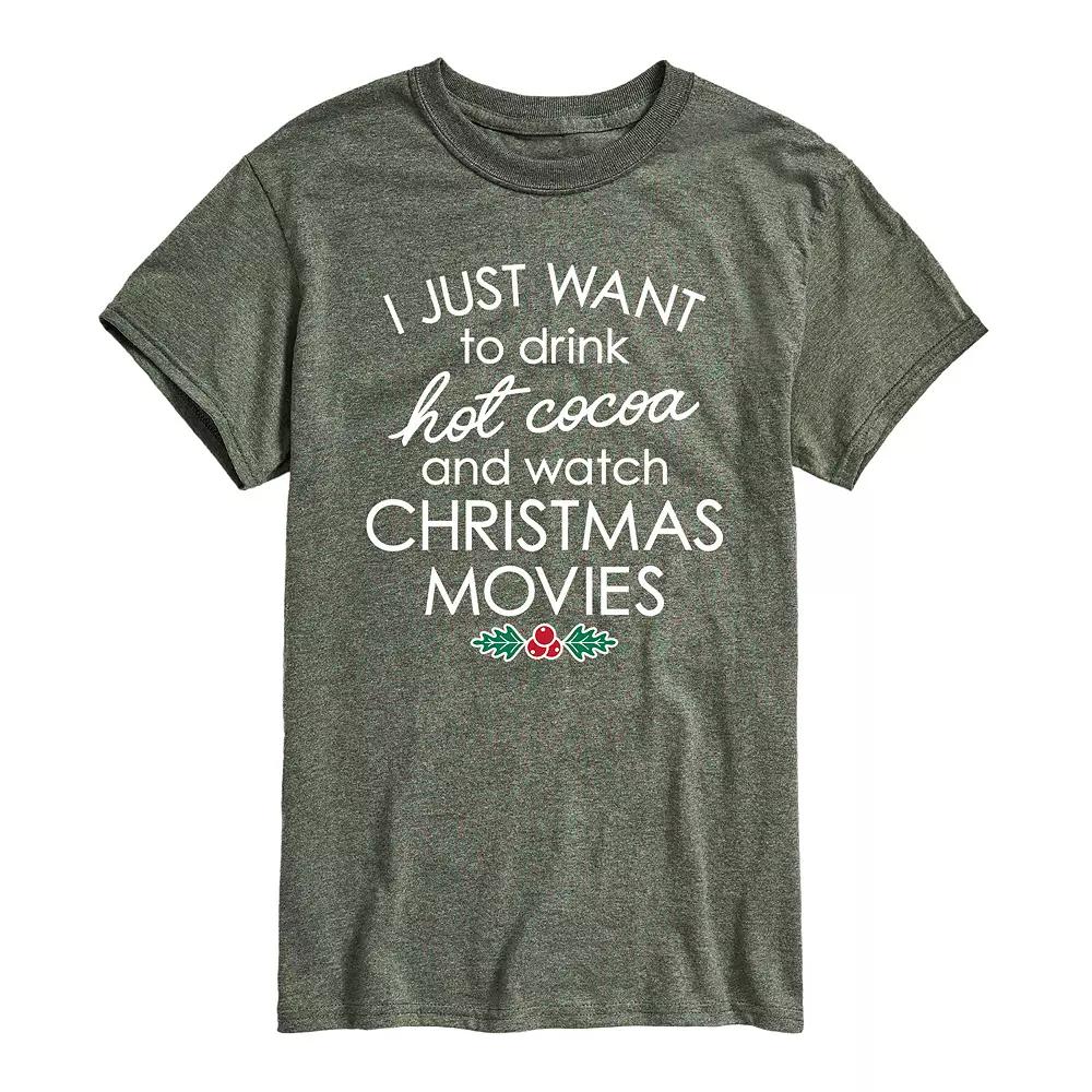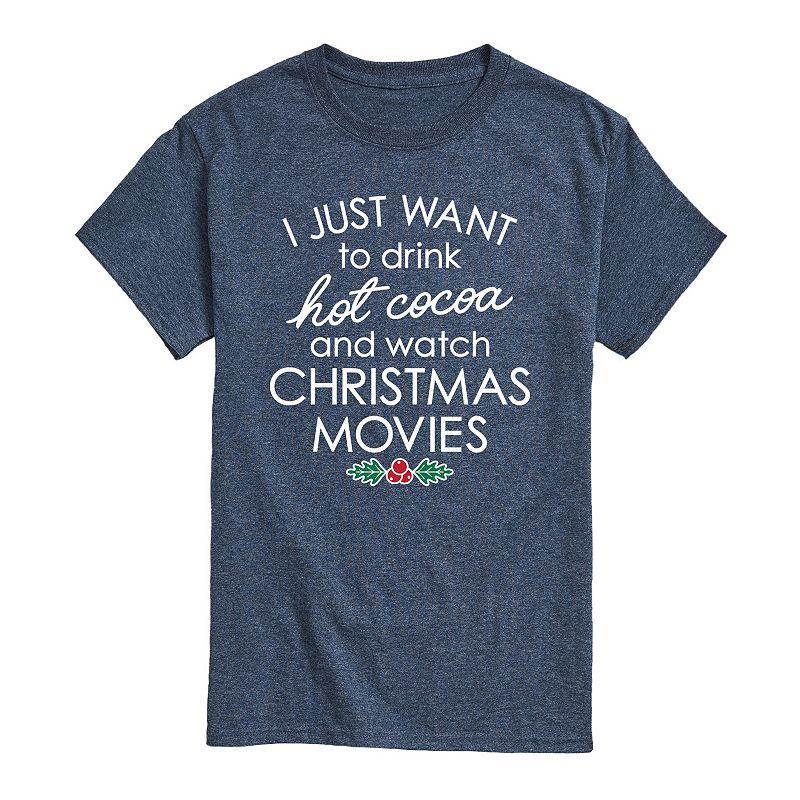Cozy up and do all your favorite holiday activities in this fun Hot Cocoa and Christmas Movies tee. Cozy up and do all your favorite holiday activities in this fun Hot Cocoa and Christmas Movies tee. Crewneck Short sleevesFABRIC & CARE Cotton, polyester Machine wash Imported Color: Med Blue. Gender: male. Age Group: adult. Pattern: Graphic.
