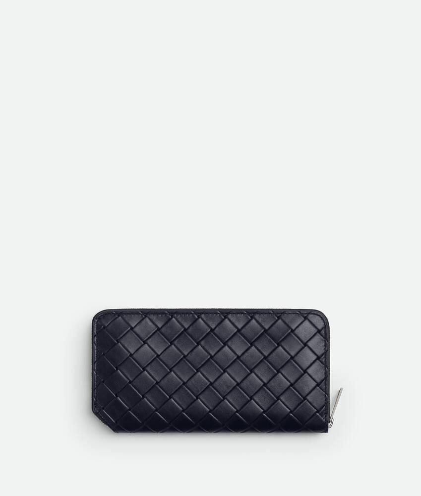 Men's Intrecciato Stamp Zip Around Wallet in Abyss