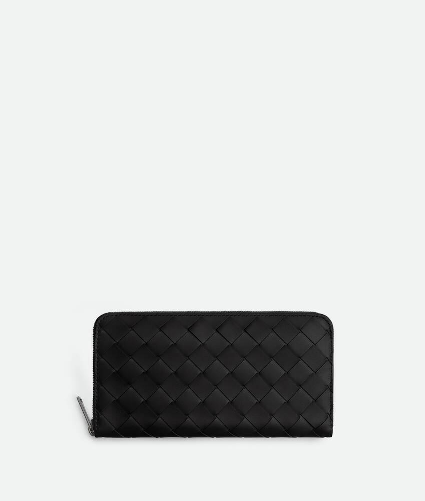 Men's Intrecciato Zip Around Wallet in Black