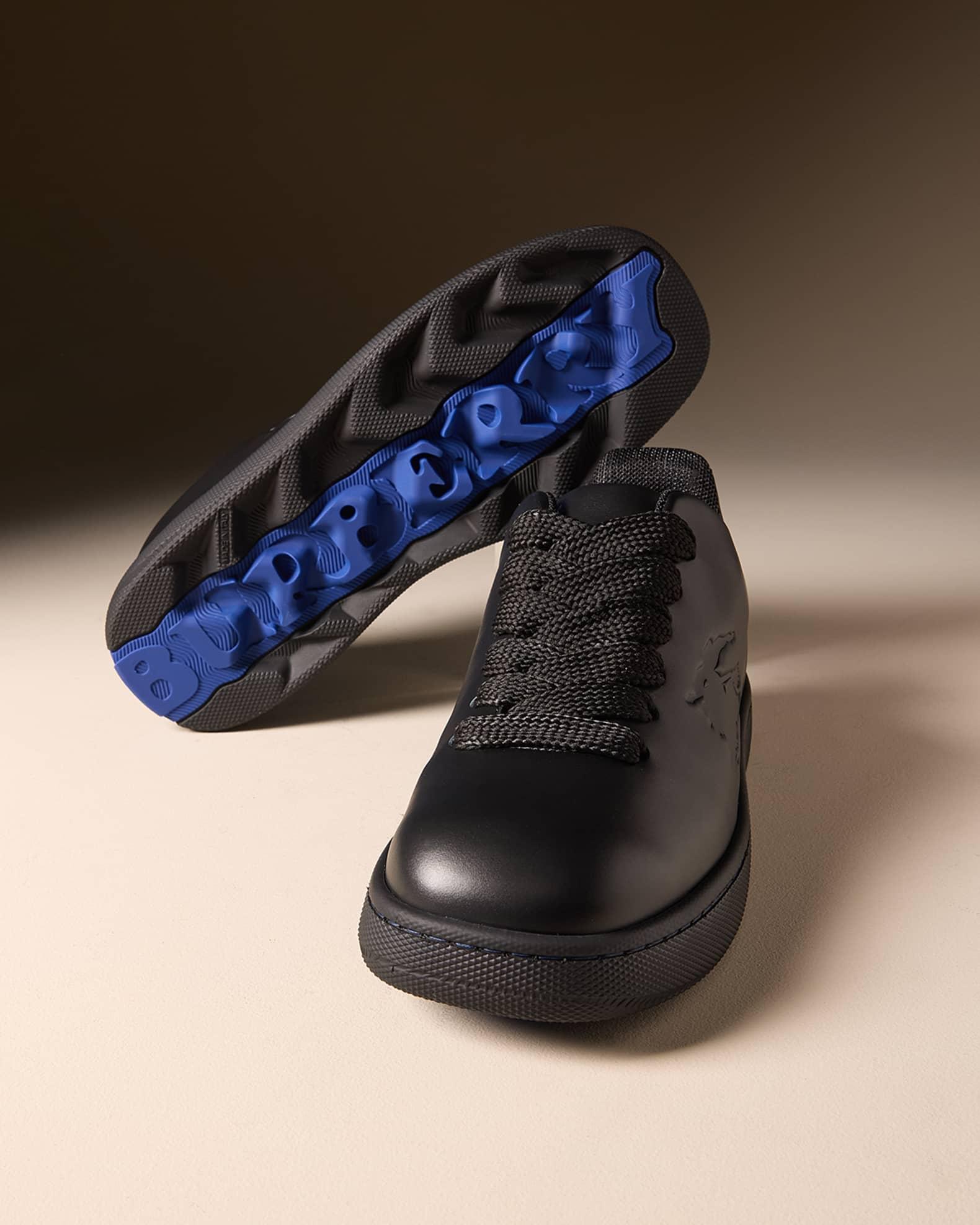 Burberrys MS25 sneakers showcase an embossed equestrian knight design, a signature of the brand. The lace-up pair are finished with a rounded toe and a check insole for a touch of classic Burberry style. Rounded toe Lace-up style Leather upper Cotton/synthetic lining Synthetic sole Made in Italy ABOUT THE BRAND Founded in 1856 by 21-year-old Thomas Burberry, the brand set out with a mission to stylishly protect against British weather-and Burberrys iconic trench coat was born. In the 1920s, its renowned check pattern was introduced as the coats lining. Today, under Creative Director Riccardo Tisci, the heritage brand continues to evolve and create timelessly classic pieces. Mens Shoes - Designer Shoes > Burberry > Saks Fifth Avenue > Barneys. Burberry. Color: Black. Size: 8.