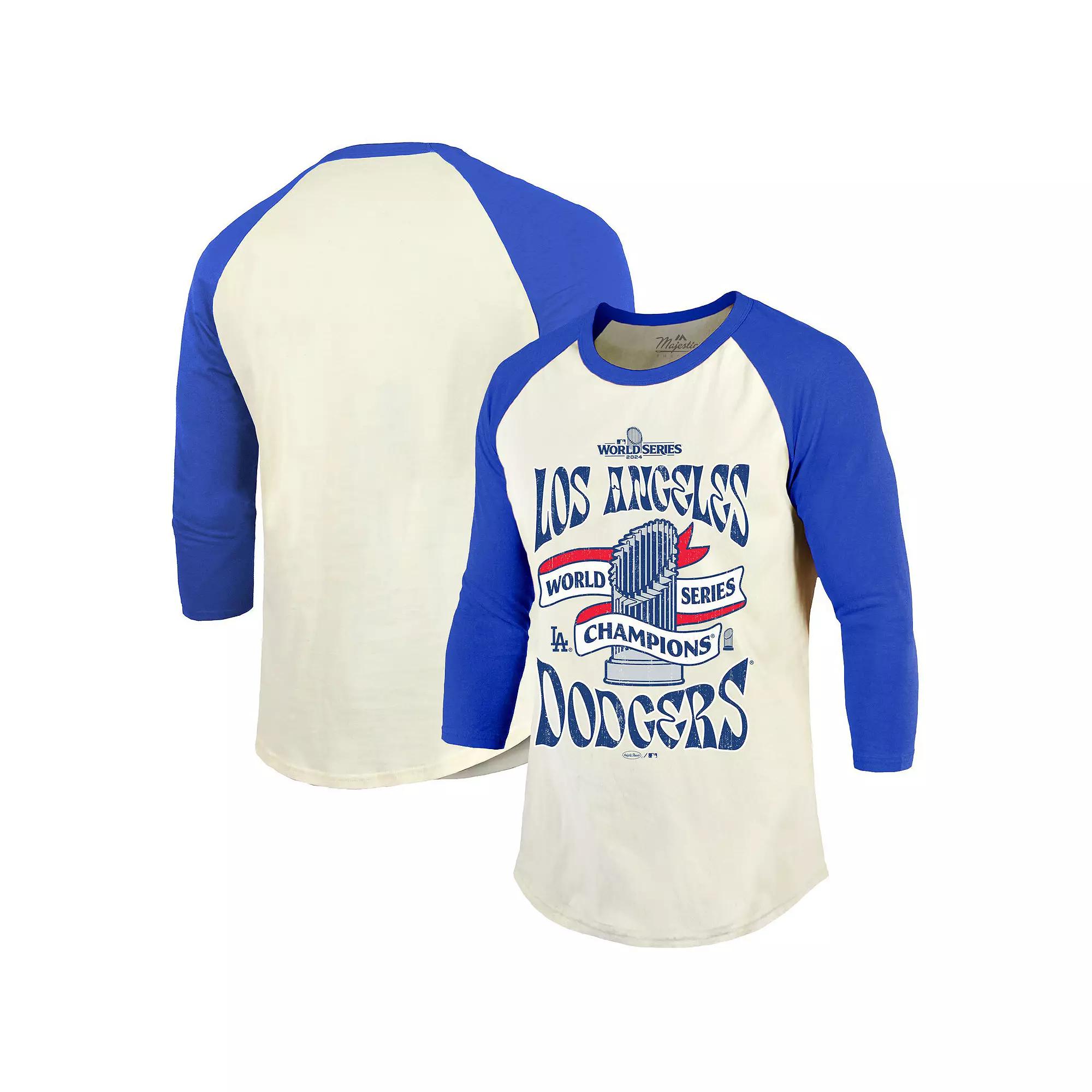 After a long and grueling season, the Los Angeles Dodgers can finally call themselves 2024 World Series Champions. Celebrate an incredible rise to the top by grabbing this 3/4-Sleeve Raglan Tri-Blend T-Shirt from Majestic Threads. The celebratory Los Angeles Dodgers graphics will help keep the party going for years to come.After a long and grueling season, the Los Angeles Dodgers can finally call themselves 2024 World Series Champions. Celebrate an incredible rise to the top by grabbing this 3/4-Sleeve Raglan Tri-Blend T-Shirt from Majestic Threads. The celebratory Los Angeles Dodgers graphics will help keep the party going for years to come.PRODUCT FEATURESCrew neckScreen print graphicsMachine wash, tumble dry lowRaglan sleeves3/4 Length sleeveMaterial: 100% CottonOfficially licensedBrand: Majestic Threads Size: 2XL. Color: Beige. Gender: male. Age Group: adult.
