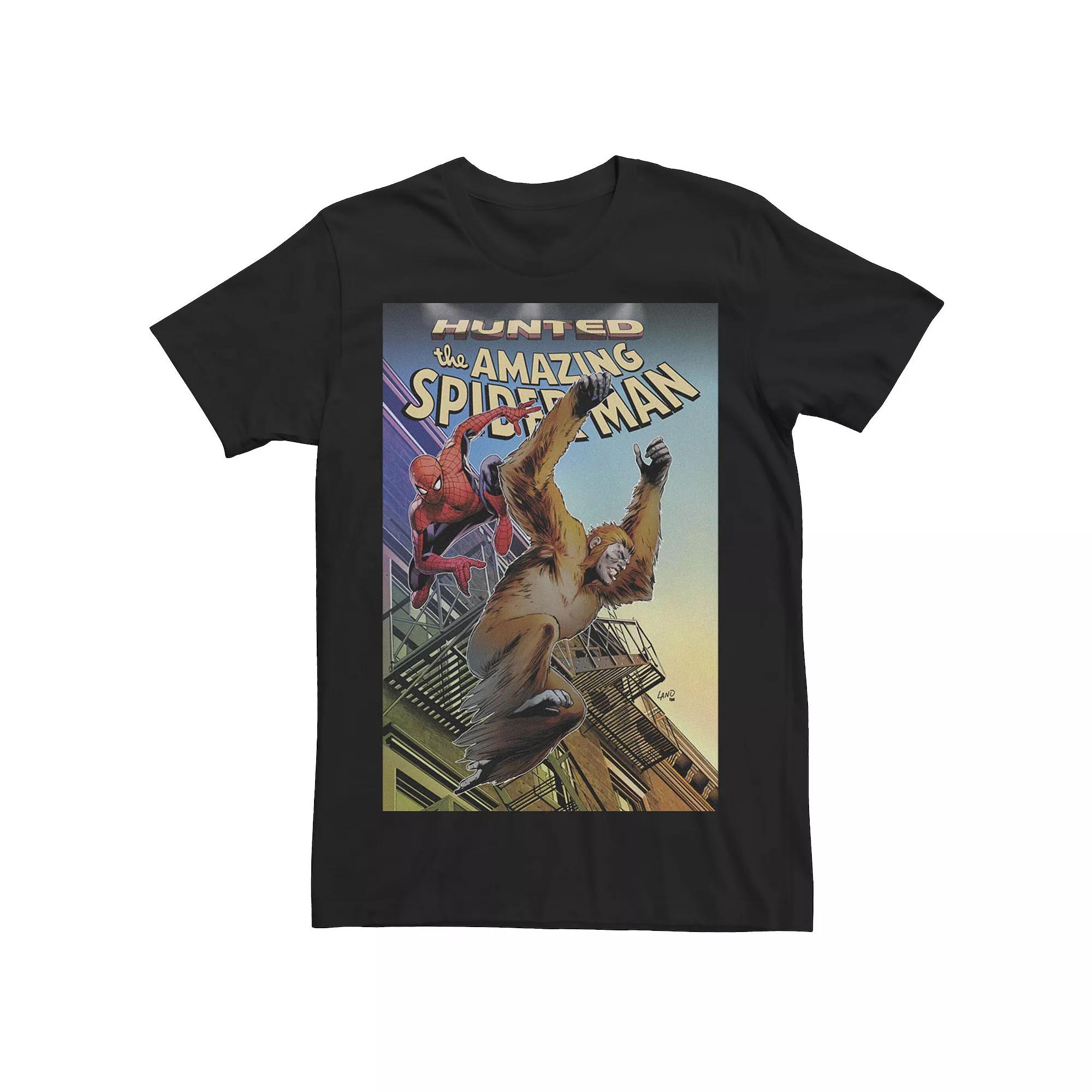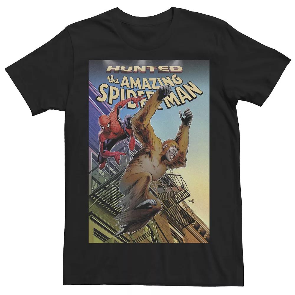 Men's Marvel Spider-Man And Gibbon Hunted Comic Book Cover Tee,