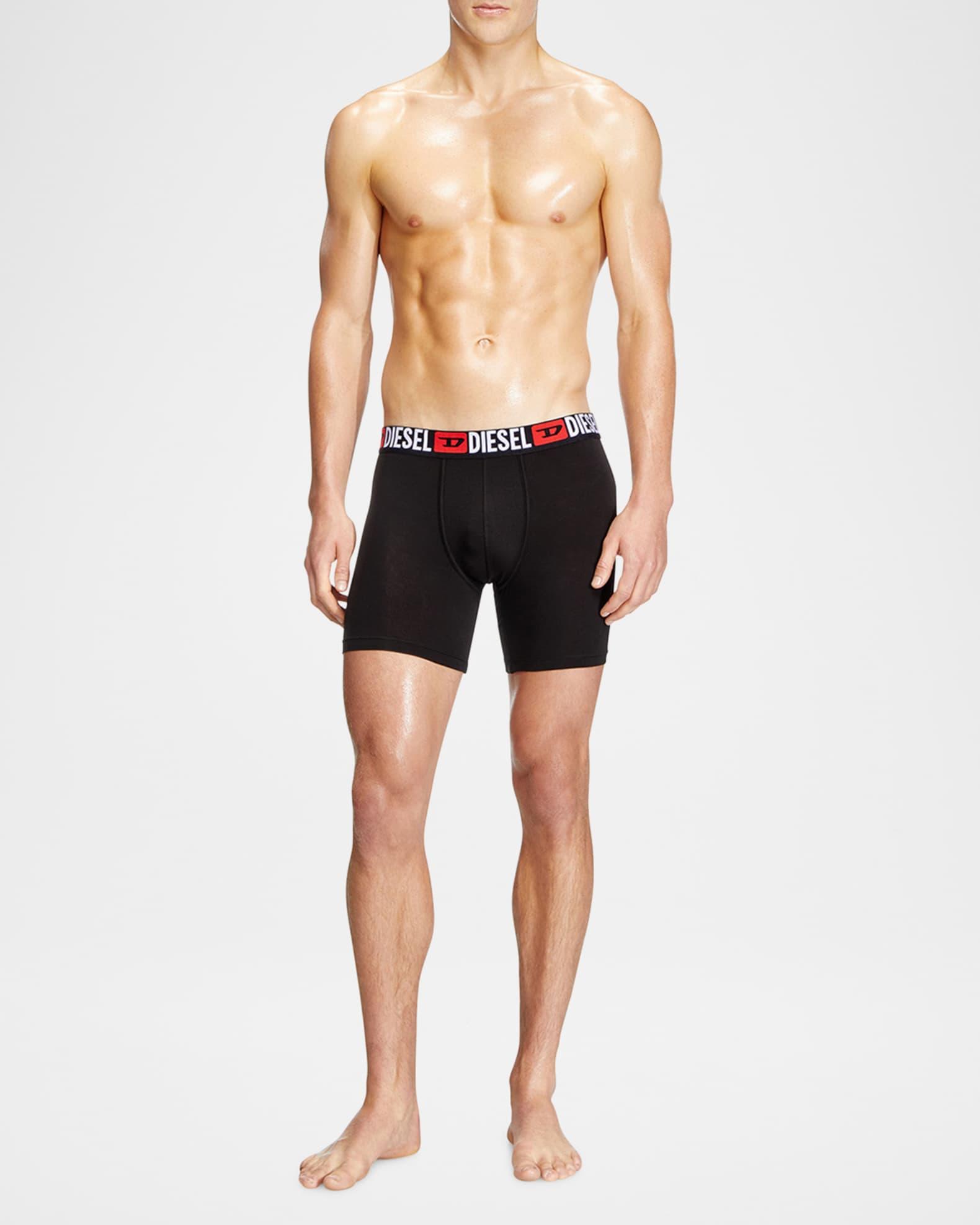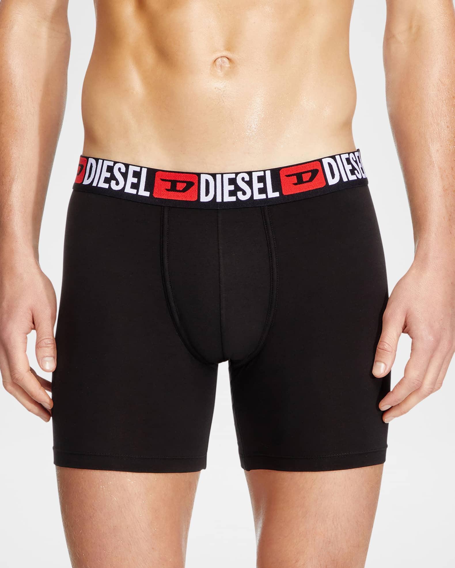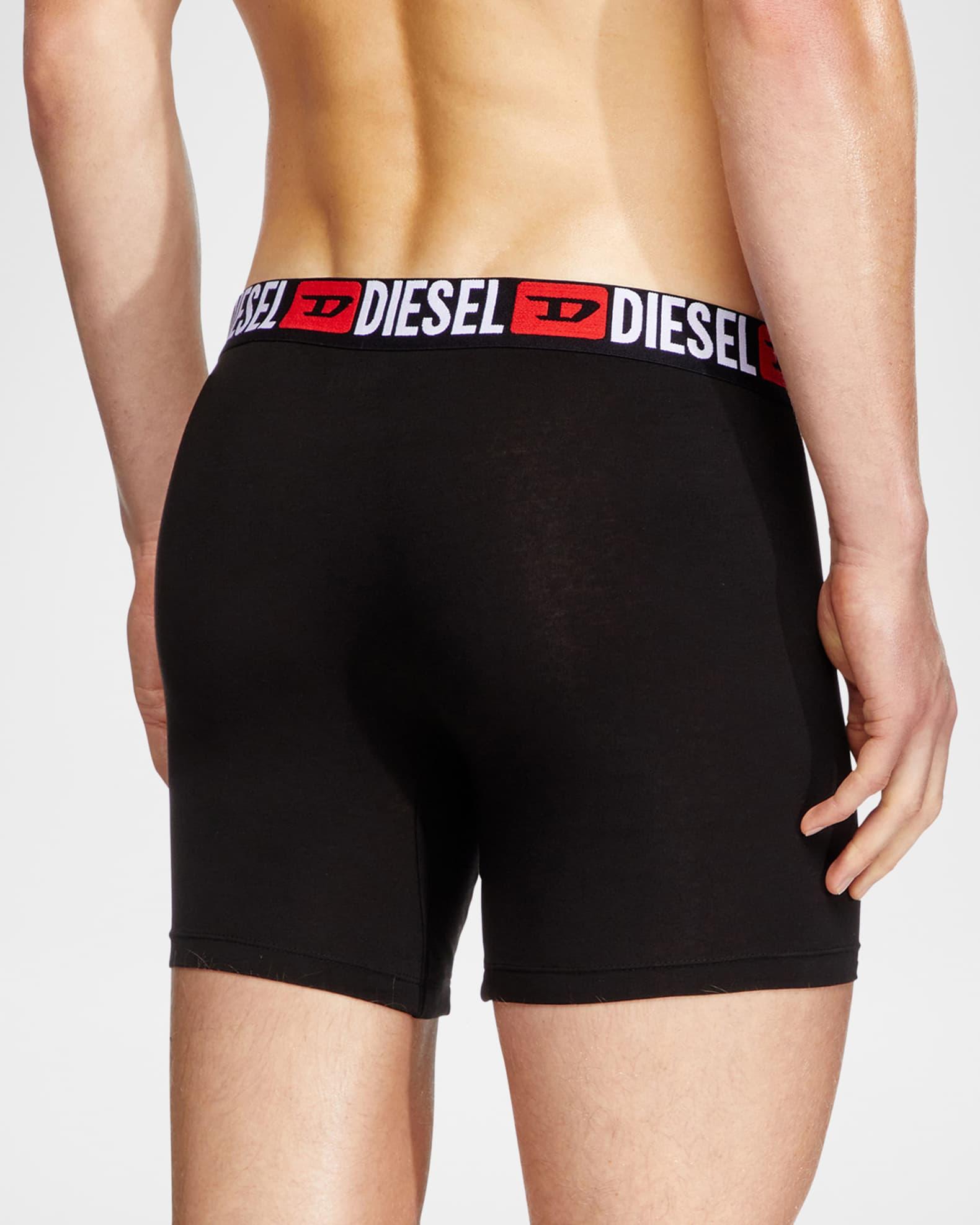 Diesel set of three cotton stretch boxer briefs Defined by wrap-around jacquard denim division logo on the center with red d accent Elasticized waistband Longer length Cotton/elastane Machine wash cold Imported