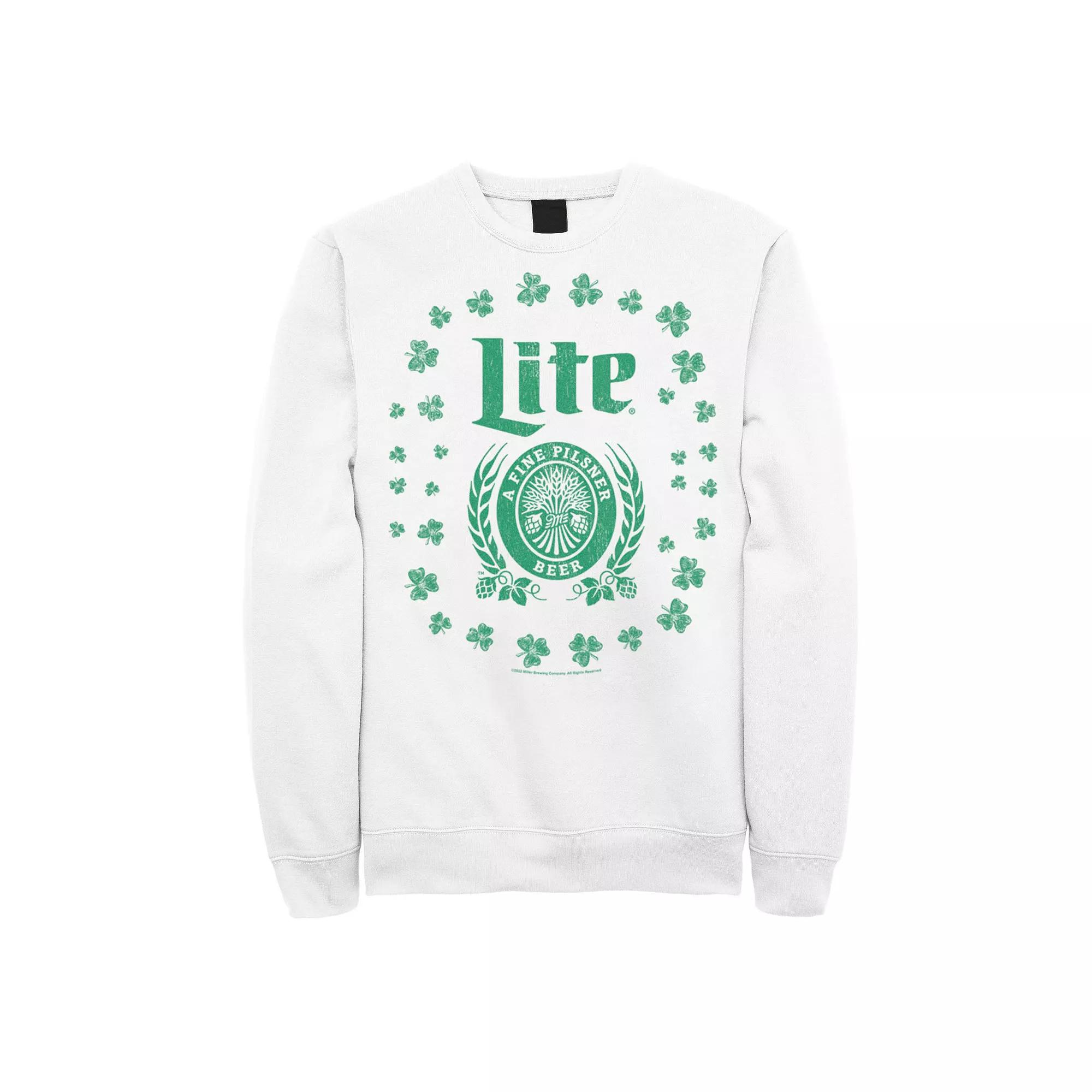 Youll be ready to shamrock and roll this St. Patricks Day in this mens Miller Lite crest sweatshirt. Youll be ready to shamrock and roll this St. Patricks Day in this mens Miller Lite crest sweatshirt. FEATURES Crewneck Long sleeveFABRIC & CARE Cotton, polyester Machine wash Imported Size: XXL. Color: White. Gender: male. Age Group: adult.