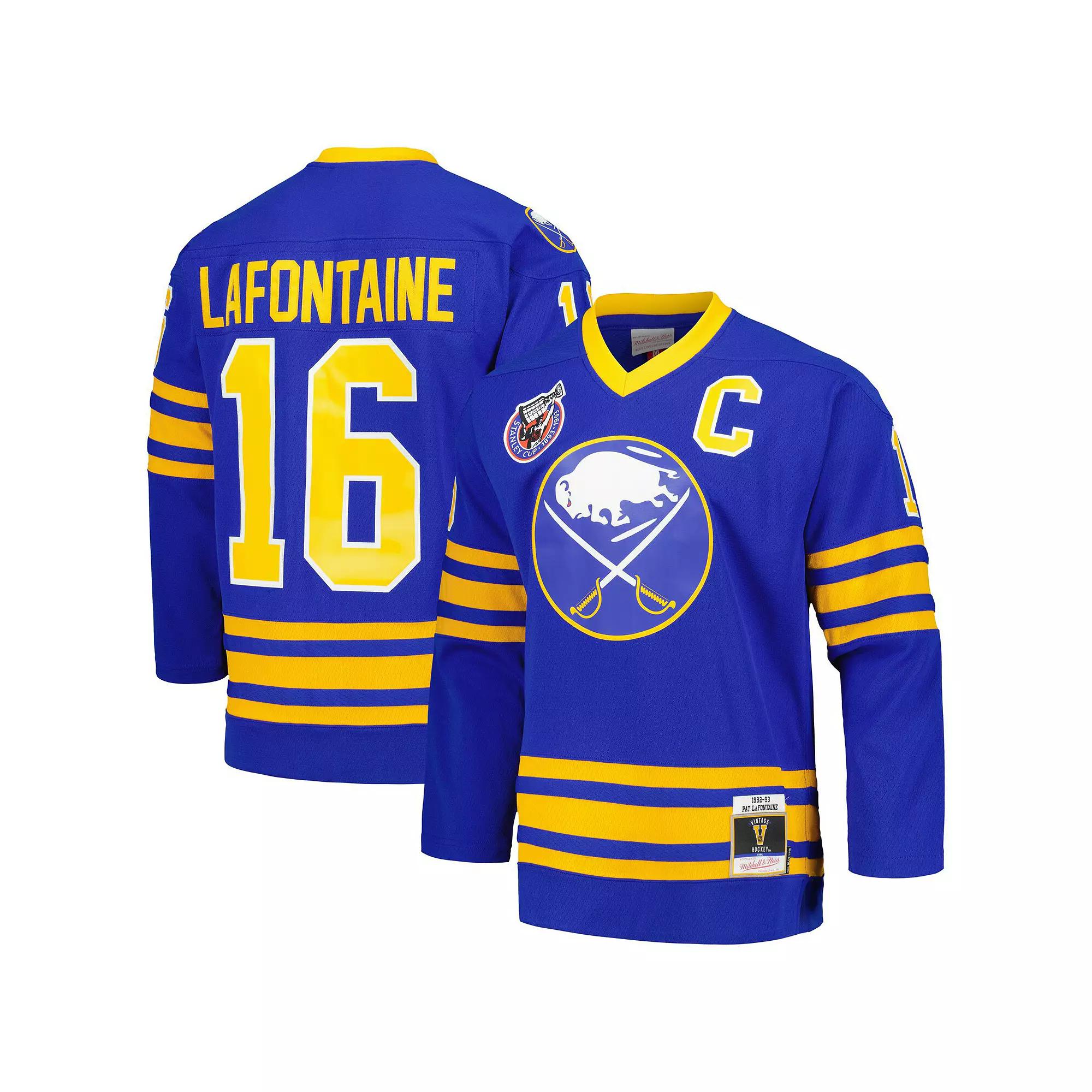 You can feel like youre hitting the ice with the greats by putting on this Pat LaFontaine Buffalo Sabres 1992/93 Blue Line Player Jersey from Mitchell & Ness. This Captain Patch jersey features authentic Buffalo Sabres colors and graphics, exactly like what Pat LaFontaine wore during his time with the team.