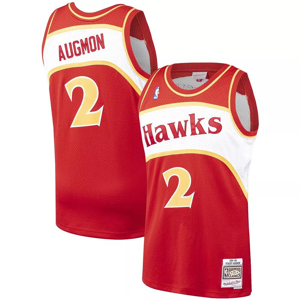 You will always take the time to honor one of the best to wear your favorite teams uniform. Before the next game tips off, pay homage to the franchises storied past while also recognizing one of its all-time brightest stars with this Atlanta Hawks Stacey Augmon Hardwood Classics Swingman jersey from Mitchell & Ness. Its throwback-inspired design and player-specific graphics are sure to remind fellow fans of all their favorite Atlanta Hawks moments, both past and present.You will always take the time to honor one of the best to wear your favorite teams uniform. Before the next game tips off, pay homage to the franchises storied past while also recognizing one of its all-time brightest stars with this Atlanta Hawks Stacey Augmon Hardwood Classics Swingman jersey from Mitchell & Ness. Its throwback-inspired design and player-specific graphics are sure to remind fellow fans of all their favorite Atlanta Hawks moments, both past and present.PRODUCT FEATURESBrand: Mitchell & NessCrew neckHeat-sealed appliquesImportedMachine wash, line dryMaterial: 100% PolyesterMesh fabricOfficially licensedSide splits at waist hemSizing Tip: Product runs small. We recommend ordering one size larger than you normally wear.SleevelessWoven jock tag at waist hem Gender: male. Age Group: adult.