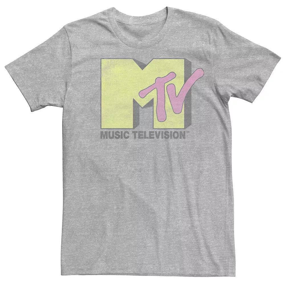 Men's MTV Vintage Pastel Yellow And Pink Logo Short Sleeve Tee,