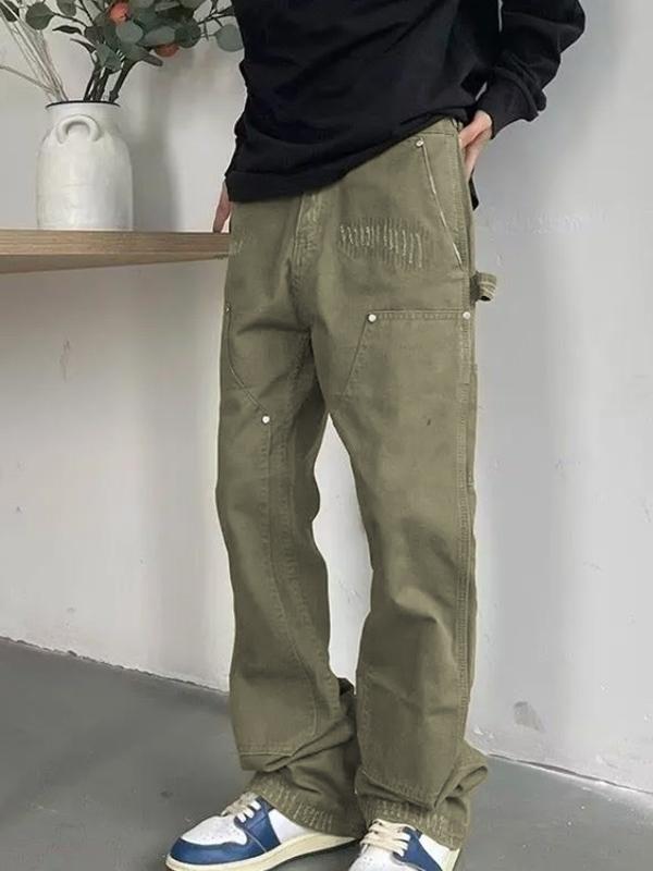 Men's Vintage Green Wash Raw Trim Loose Jeans