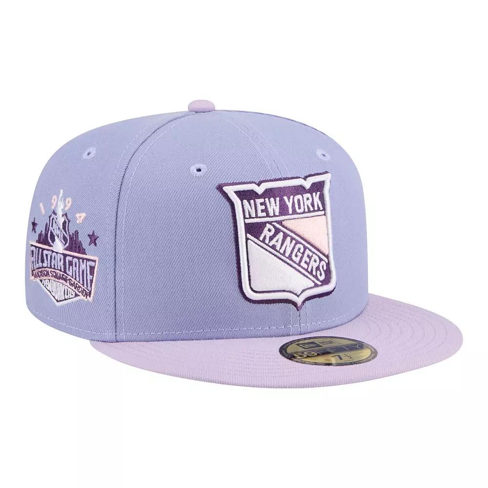 Embrace a fresh, street-forward look when you sport this New York Rangers Lavender Bloom 59FIFTY Fitted Hat from New Era. Designed for a tailored silhouette and lasting comfort, this cap captures the electrifying energy of game day with embroidered team and event graphics. The six-panel construction with eyelets ensures breathable wear, while the grey undervisor adds a touch of archival detailing. This piece is a high-impact way to rep your New York Rangers pride in a truly unique style. Brand: New Era. The 59FIFTY is the originator of the true fitted cap and the brand's flagship style. Wipe clean with a damp cloth. Embroidered event graphics on side panel and league graphics on the back. Material: 100% Polyester. Grey undervisor. Officially licensed. High Crown. Imported. Six-panel construction with eyelets. Structured fit. Embroidered team graphics with raised details on front. Fitted. Flat bill. Size: 7 1/4. Color: Ran Lt Pur. Gender: male. Age Group: adult. Material: COTTON.