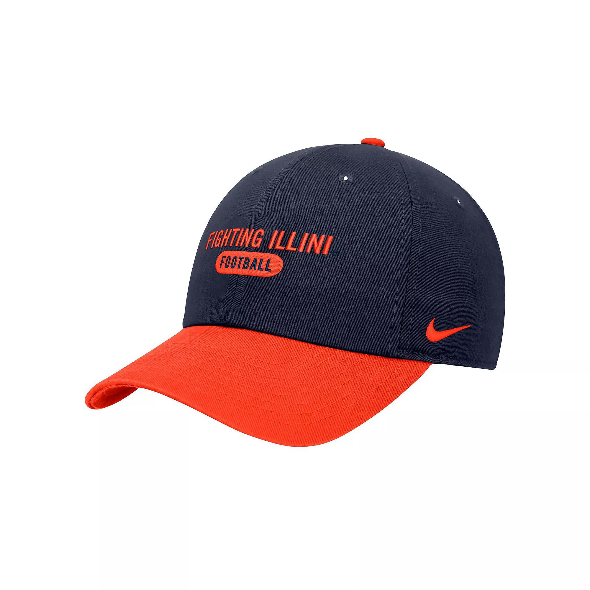 Show off your Illinois Fighting Illini pride with this Colorblock Club Adjustable Hat from Nike. Made from 100% cotton, this unstructured hat features a relaxed, low crown and a curved bill for a comfortable fit thats perfect for all-day wear. The embroidered graphics on the front panels let you rep your Fighting Illini with pride.Show off your Illinois Fighting Illini pride with this Colorblock Club Adjustable Hat from Nike. Made from 100% cotton, this unstructured hat features a relaxed, low crown and a curved bill for a comfortable fit thats perfect for all-day wear. The embroidered graphics on the front panels let you rep your Fighting Illini with pride.PRODUCT FEATURESMaterial: 100% CottonAdjustable fabric strap with slide buckleUnstructured relaxed fitWipe clean with a damp clothOfficially licensedImportedSix panels with eyeletsEmbroidered graphics on frontCurved billLow CrownOne size fits mostBrand: Nike Size: One Size. Color: Navy. Gender: male. Age Group: adult.