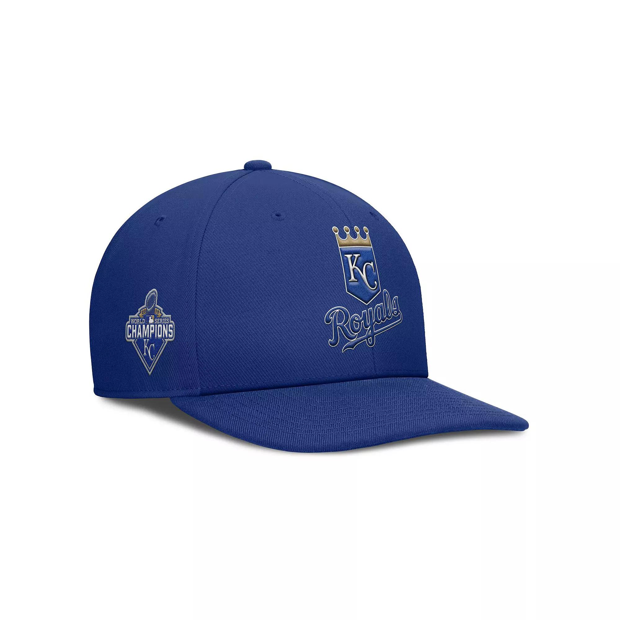 Keep your head cool and dry in this Kansas City Royals Pro Performance Snapback Hat by Nike. It features sweat-wicking Dri-FIT technology and an easily adjustable fit. With embroidered team details on the front and side, this Kansas City Royals hat doubles up on showing everyone your fandom. High Crown. Dri-FIT technology wicks away moisture. One size fits most. Flat bill. Six panels with eyelets. Snapback. Structured fit. Officially licensed. Imported. Brand: Nike. Material: 100% Polyester. Wipe clean with a damp cloth. Team name embroidered with raised details across the front. Embroidered team logo on right-side panel. Size: M/L. Color: Blue. Gender: male. Age Group: adult. Material: COTTON.